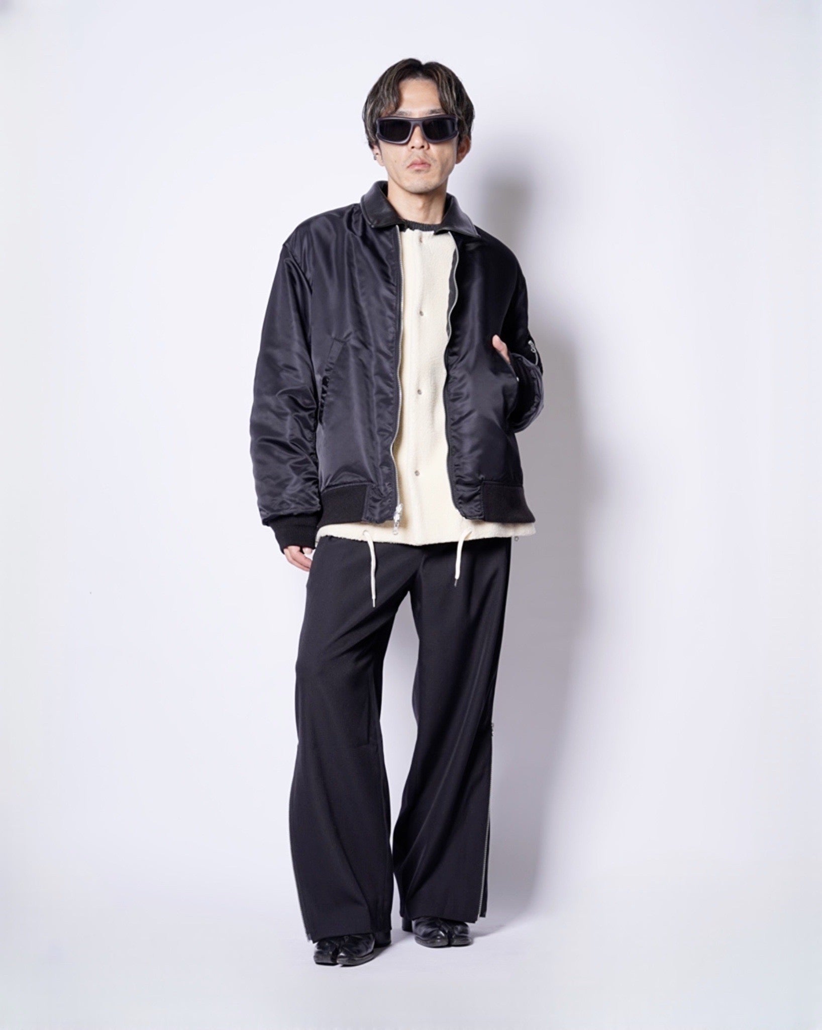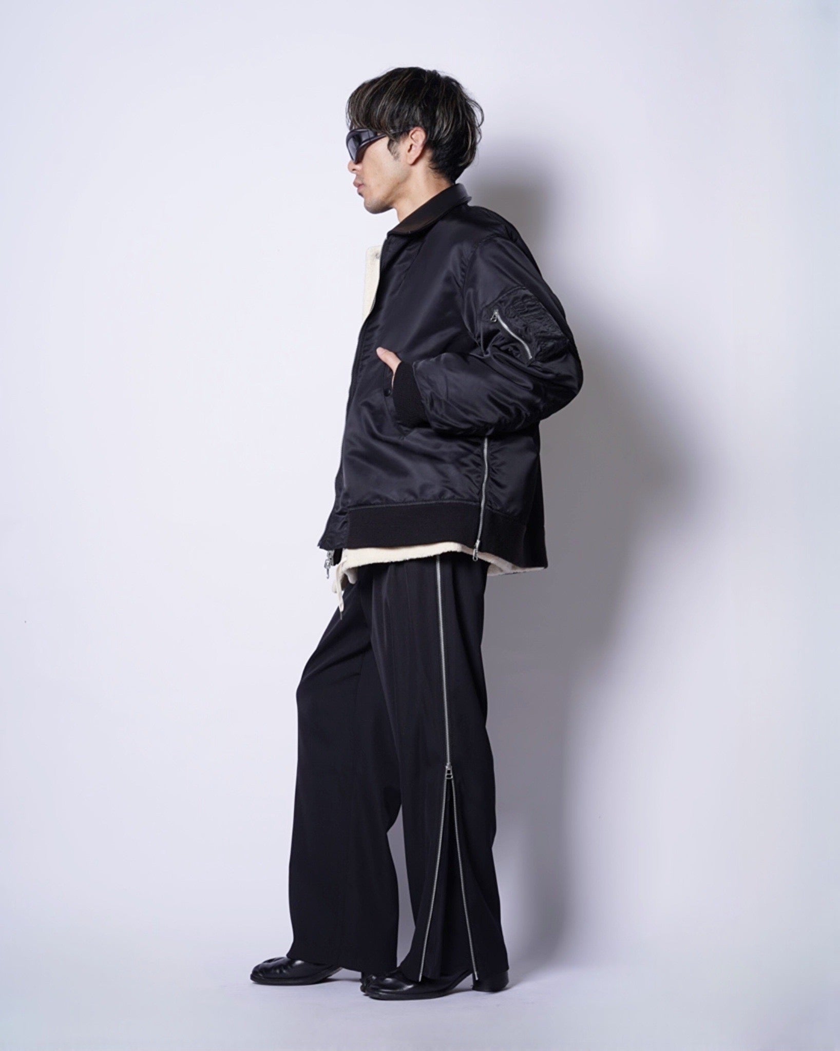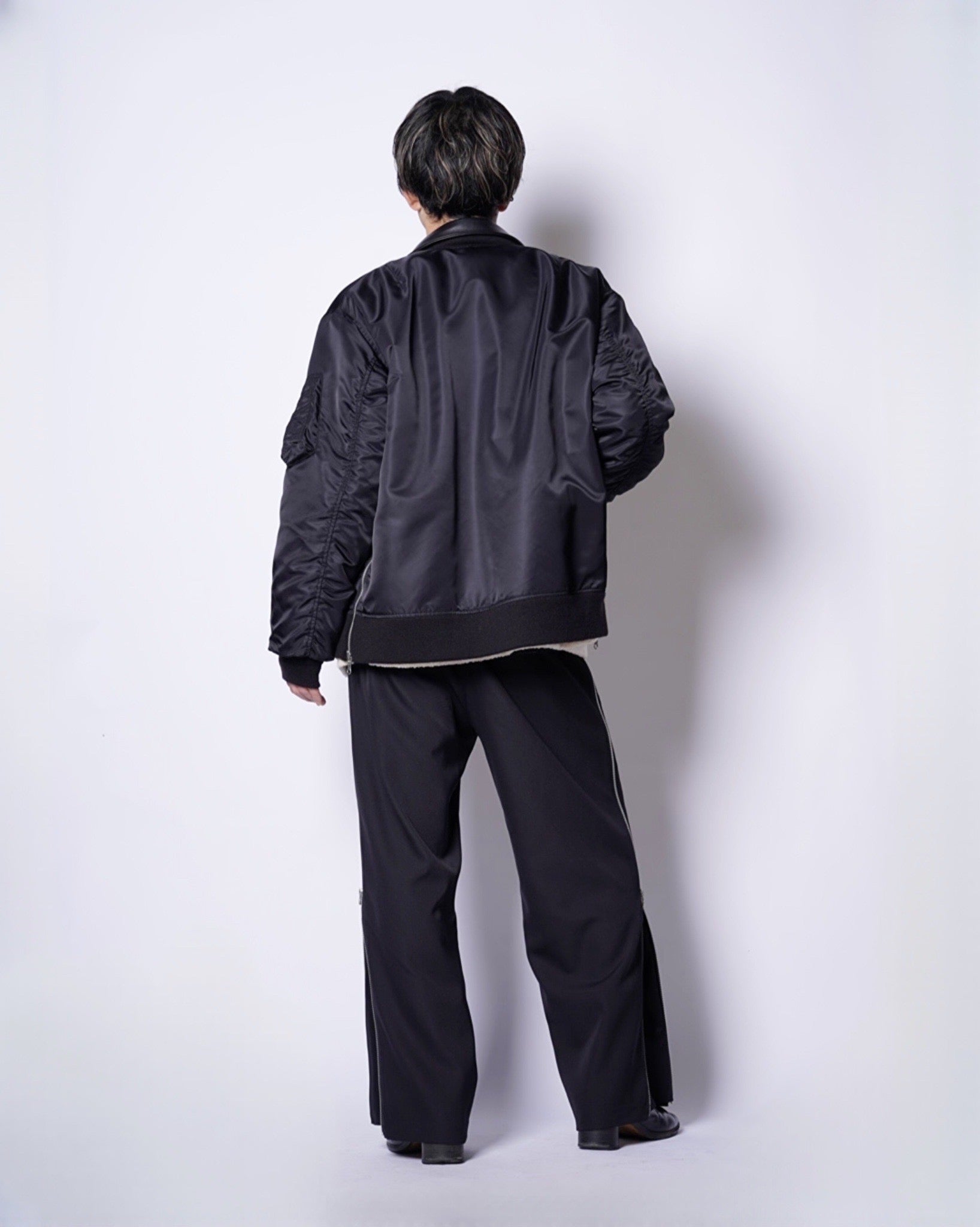 ・MA-1のボディーの両サイドにジップスリットを配しており、開けることでレイヤードデザインながらも窮屈さのない着心地になります。