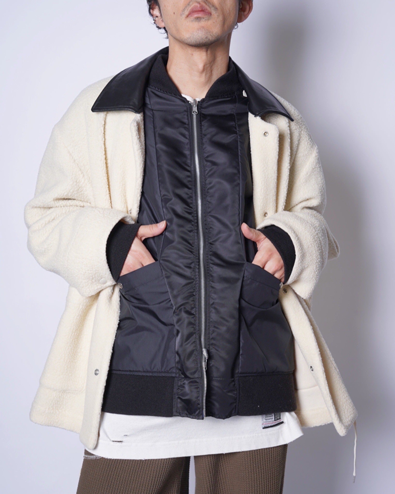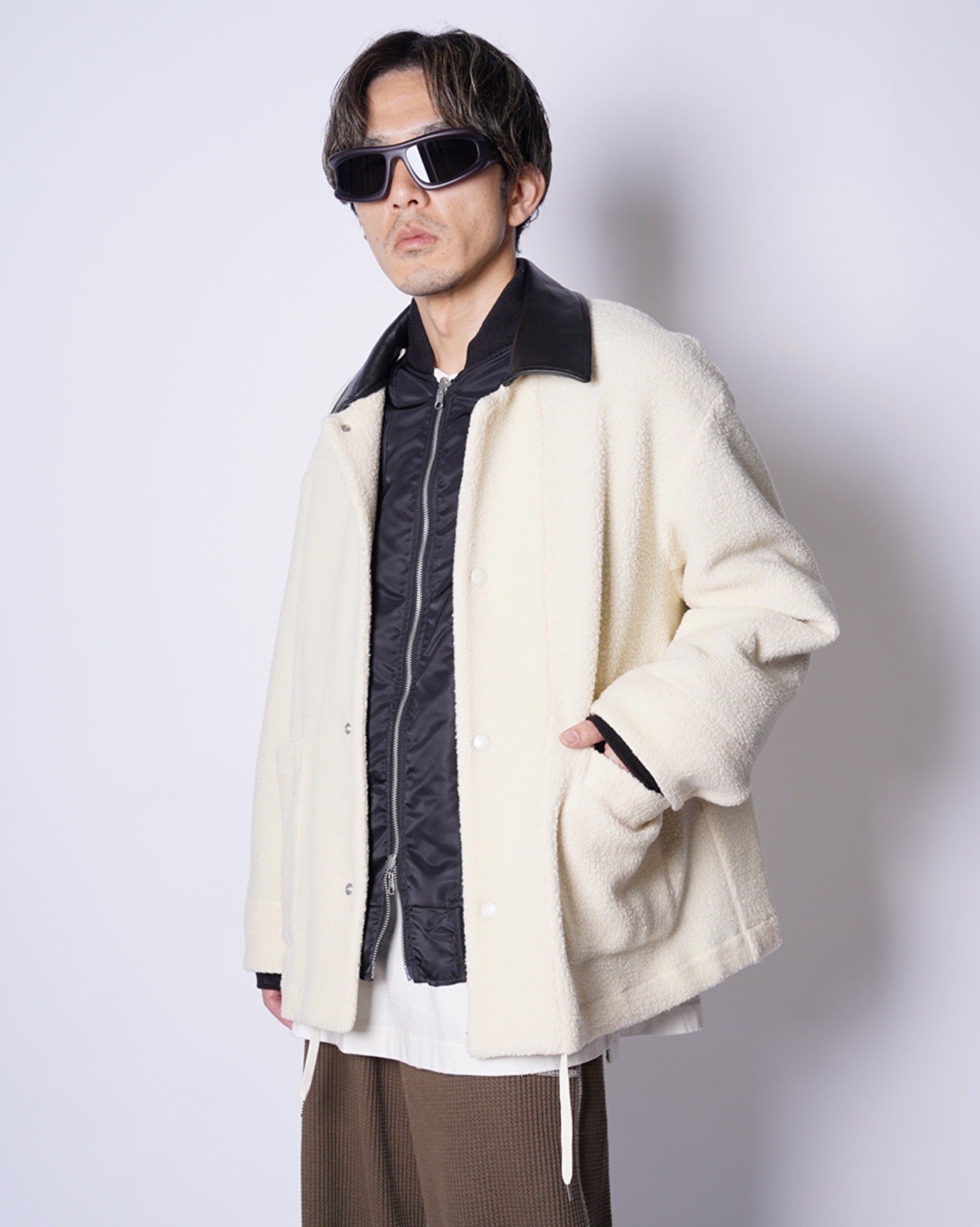 ・ボアライナーは柔らかくしっかりとした暖かみを備えつつ、衿部分にあしらったレザーがクラシカルなヴィンテージ感を漂わせ、スタイリングにモードなアクセントを加えます。