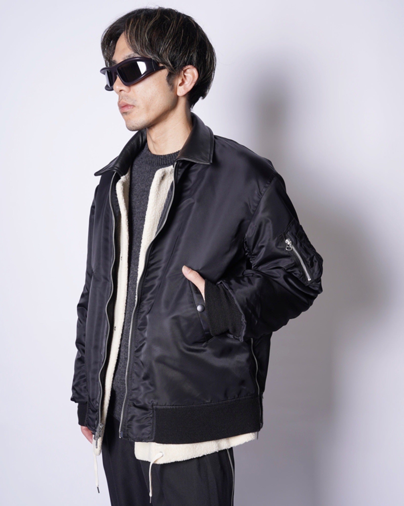 ・取り外し可能なボアライナーをレイヤードした、ハイブリッドなリバーシブルMA-1。