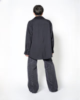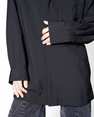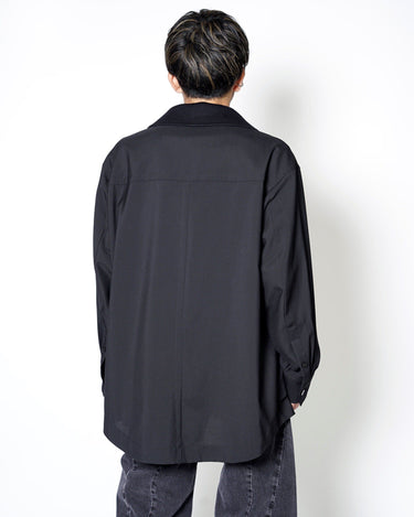 OVERSIZED SHIRT JACKET WITH REMOVABLE COLLAR IN WOOL HARD SHIRTING