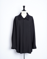・シャツジャケットとして着られるシルエットながら、生地の落ち感を活かしていることで収まりの良いアウトラインを作り出しています。