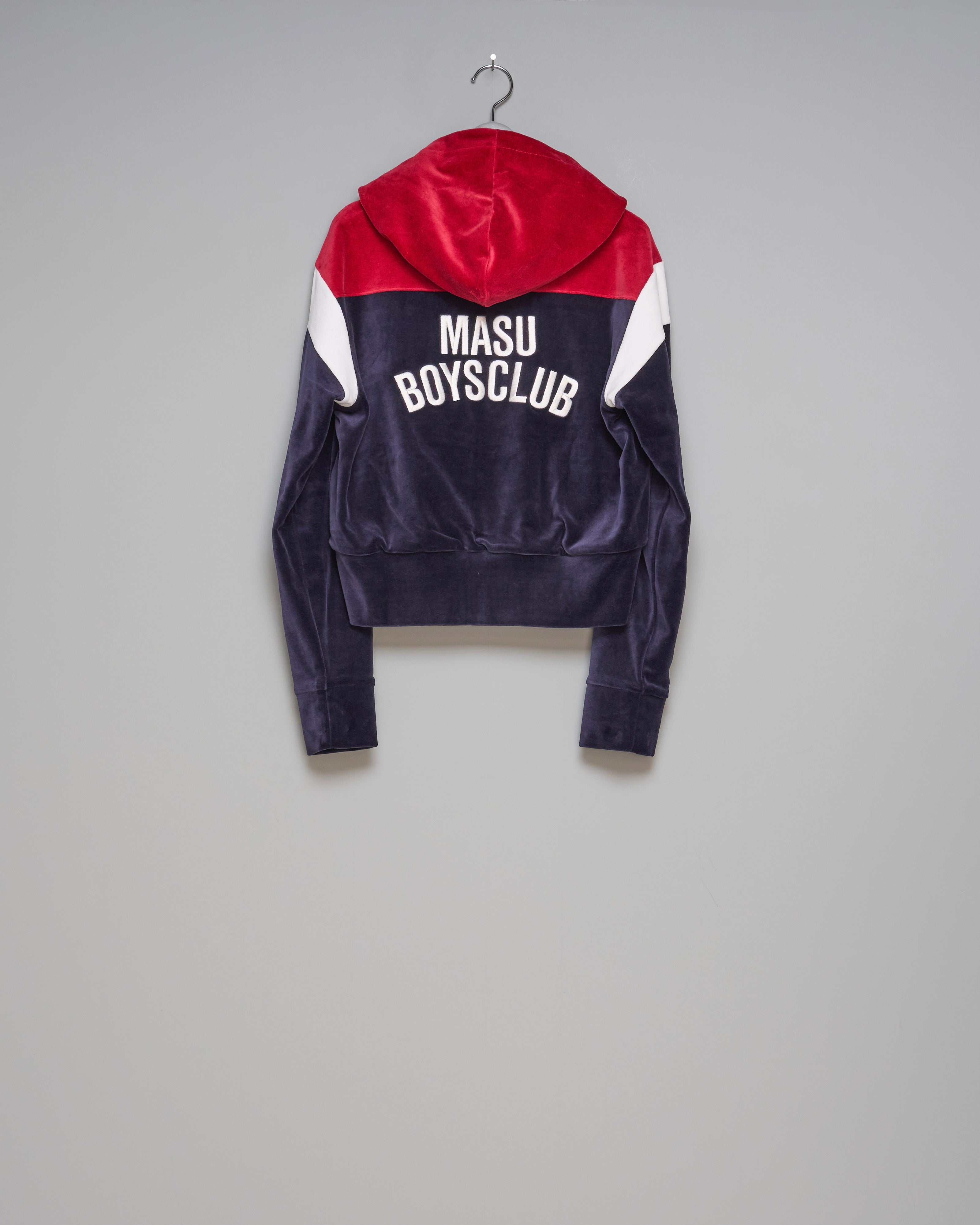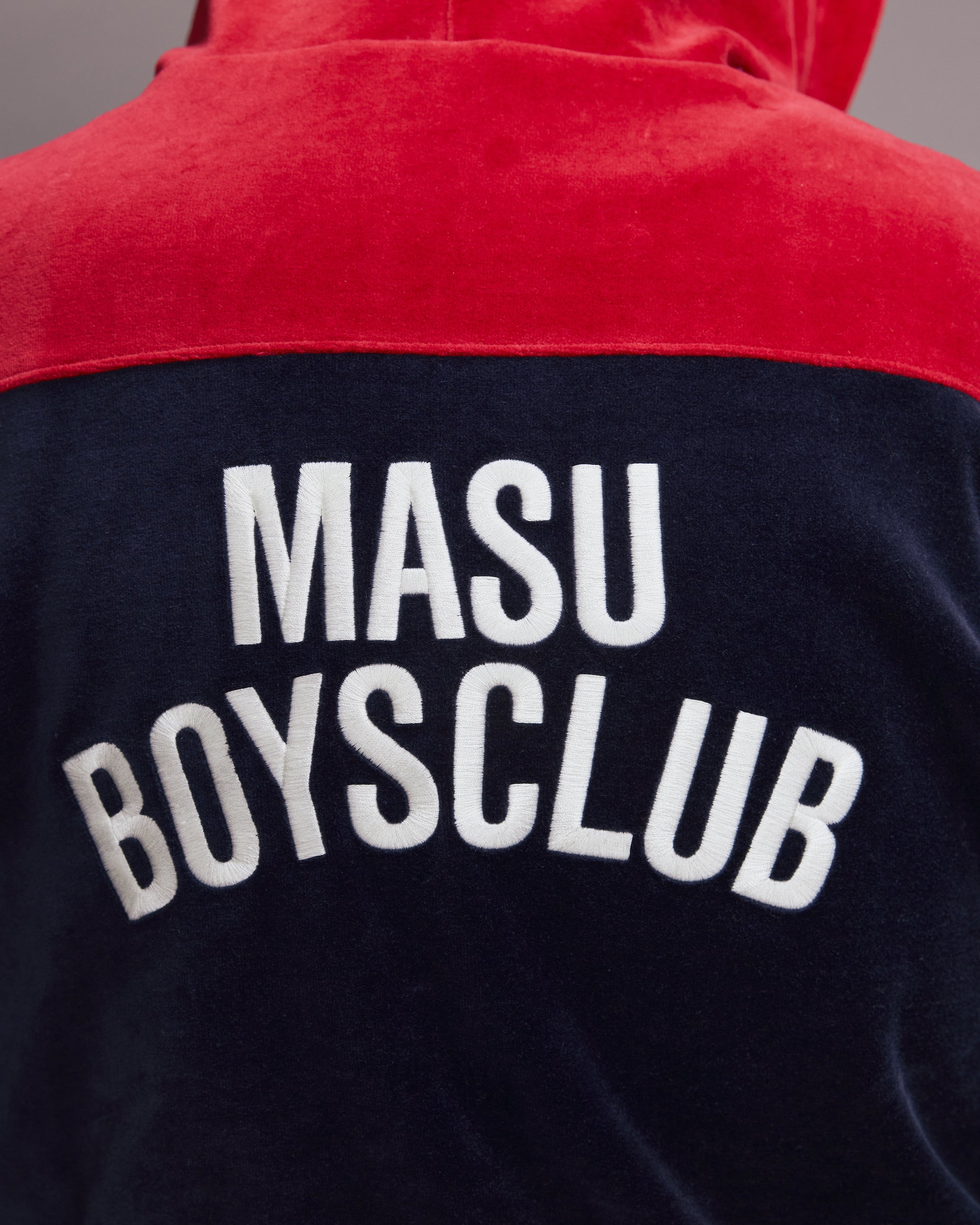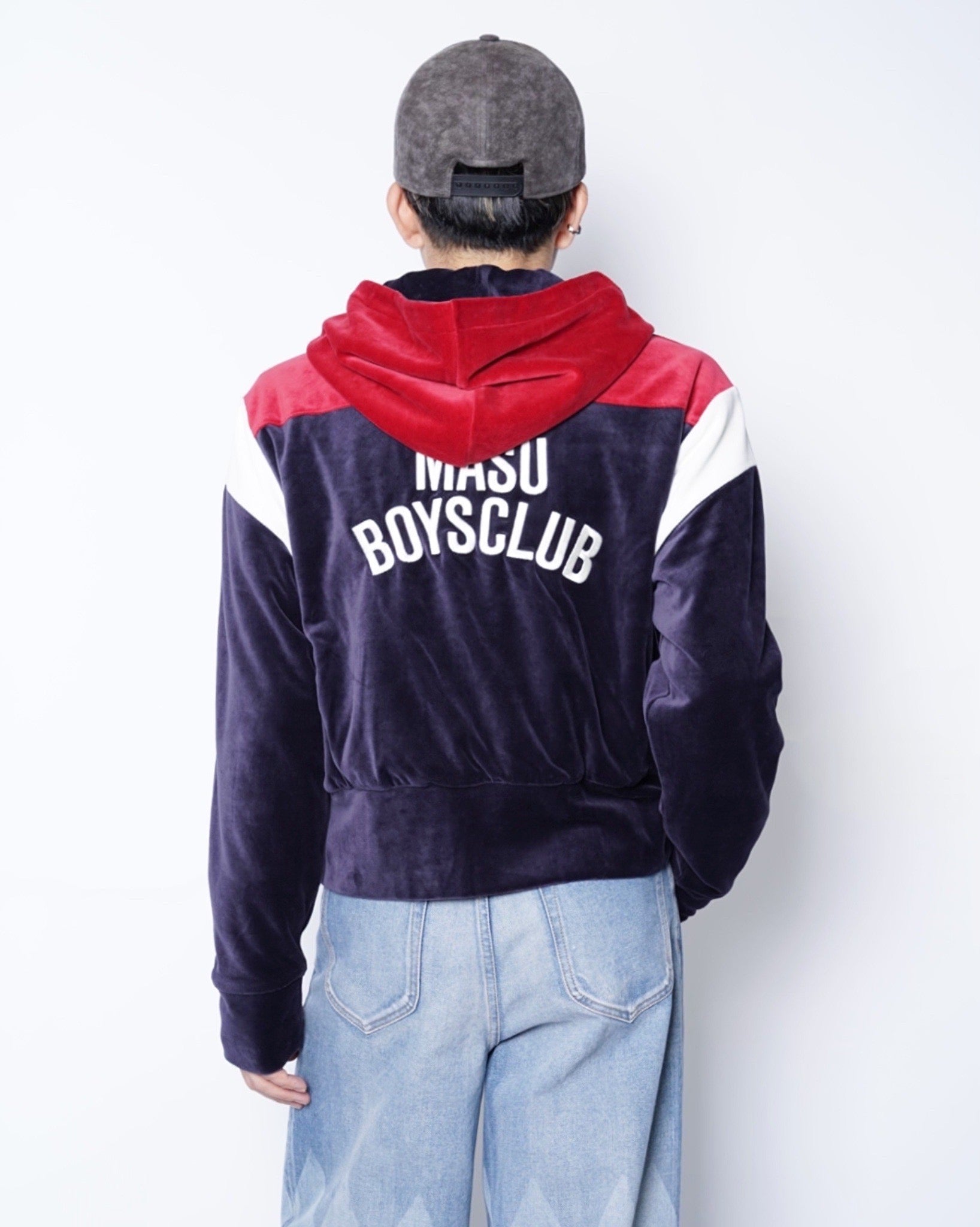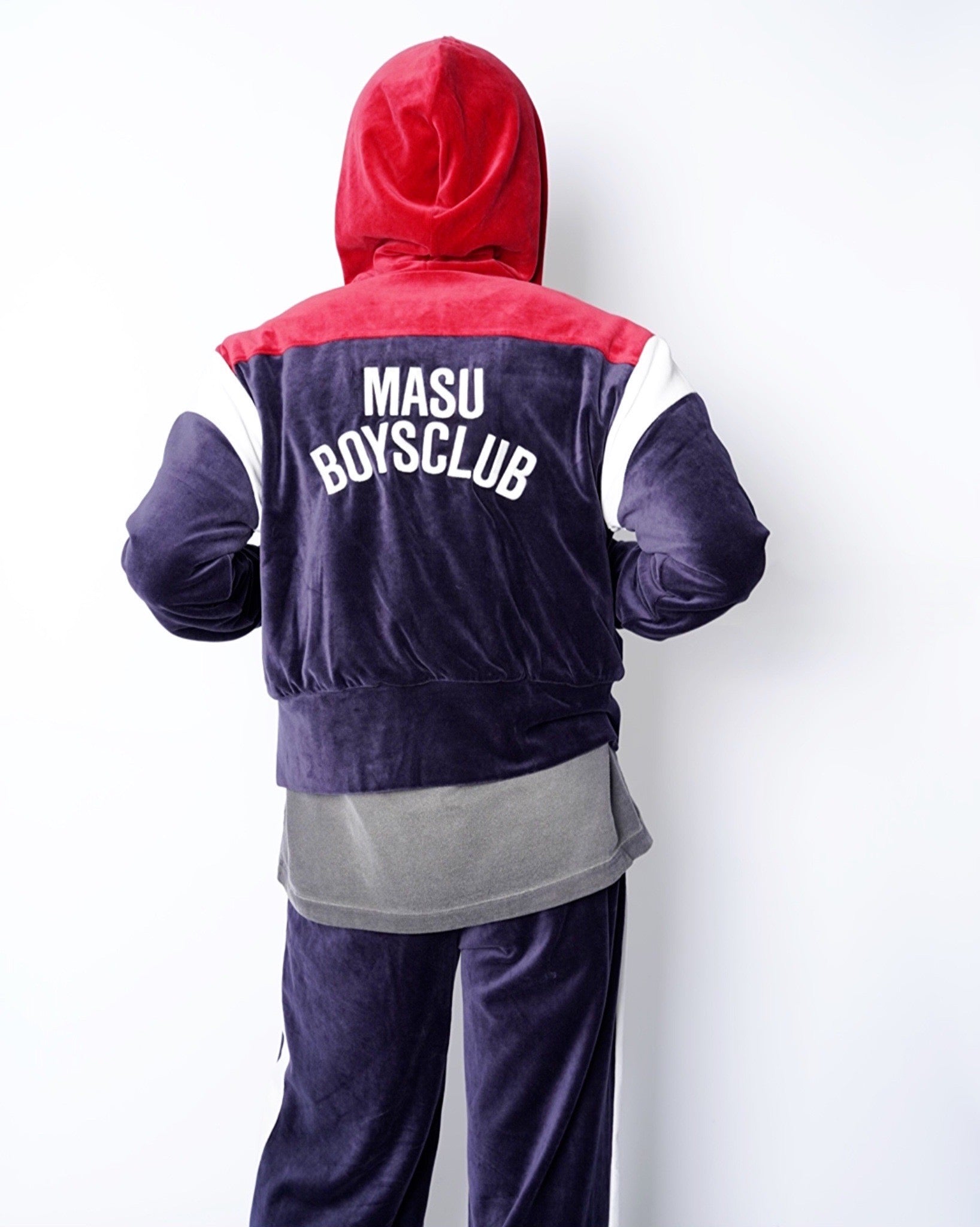 ・左胸にPUMAのキャットロゴ、右胸にPUMA SPORTS、右袖に天使ロゴ、背面にはMASU BOYS CLUBと計4箇所にわたって刺繍が施されています。