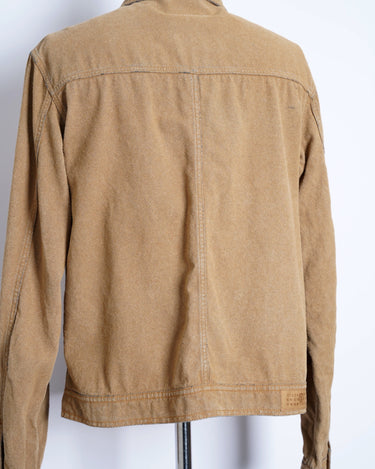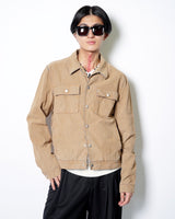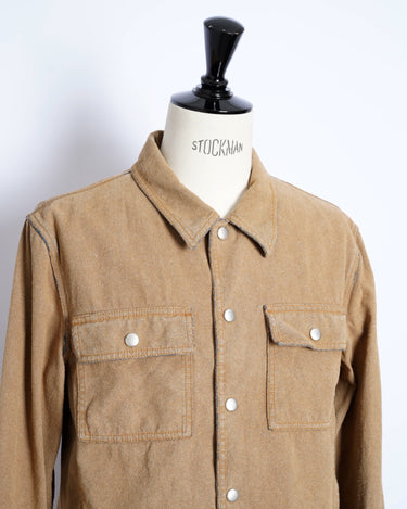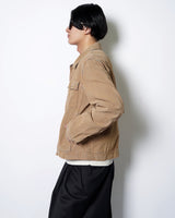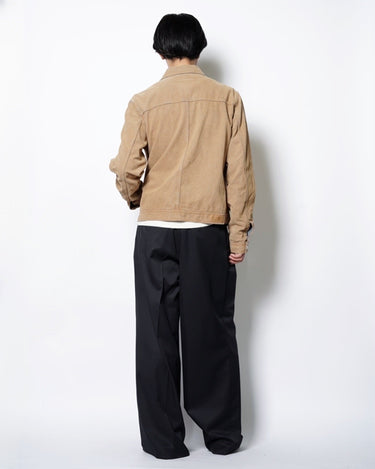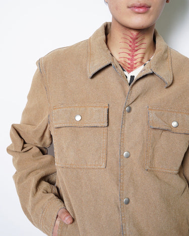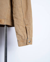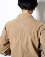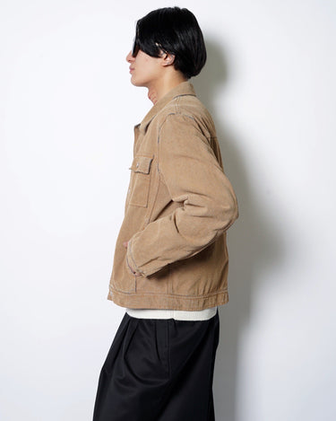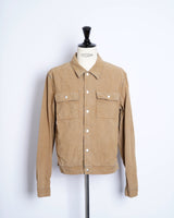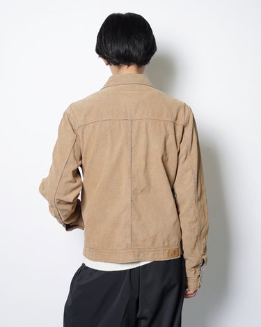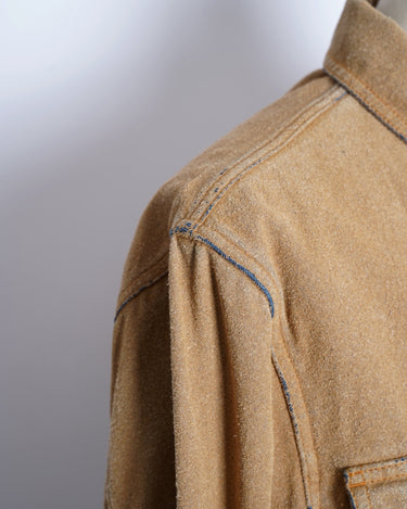 ・デニムジャケットの上にスウェードタッチな表面加工を施した、特異的な一着。