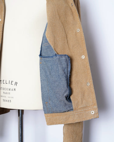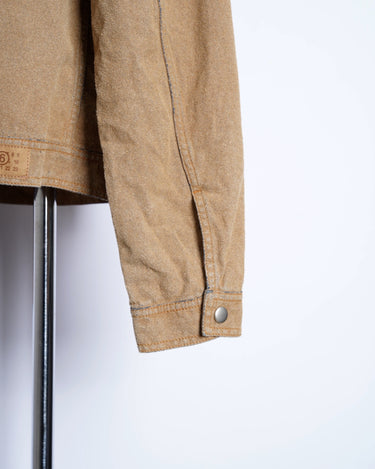・デニムジャケットのスウェードのレザージャケットが合わさったようで、どこかノスタルジックでアメリカナイズな仕上がりとなっており、マルタンマルジェラ期のメゾンマルジェラにありそうなデザインに。