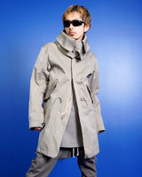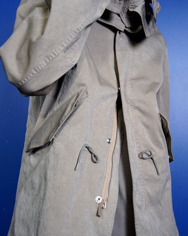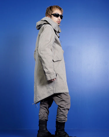 ・OJJの強靭な生地により、大ぶりなフードが立体的に立ち上がり迫力を増しています。