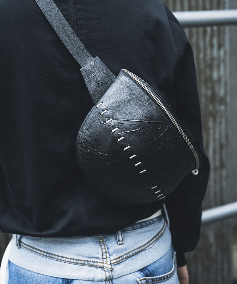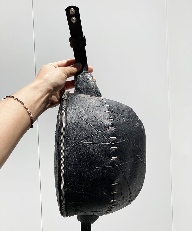 シルバー950製のカスガイパーツを20本用いて立体的に仕上げたバムバッグ。