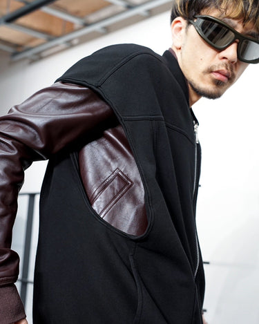 ・ボンバージャケットをベストに仕上げつつも、ソリッドで重厚なデザインに。