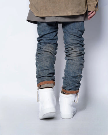 ・タイトなボトムと合わせてストラップを見せてバスケットシューズライクに履いていただいたり、裾幅の広いものと合わせてもミニマルなアッパーデザインにより静かながらも存在感をしっかりと放ってくれます。