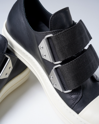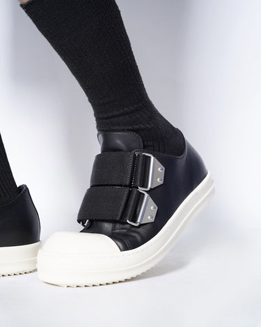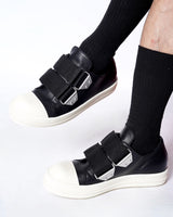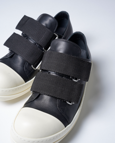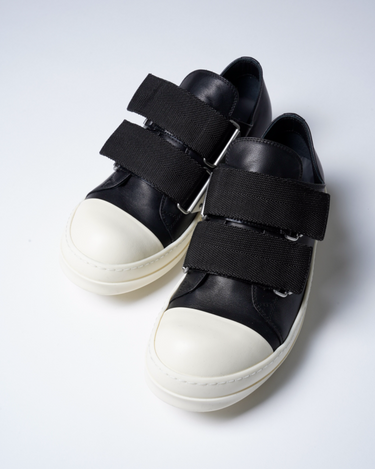 ・ワイドストラップが象徴的なRick Owensらしいデコラティブな一足。