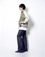 ・ミハラヤスヒロらしいコクーン型のオーバーシルエットで袖も前振りになっていることで、背面のスカジャンの一部が見えてドッキングデザインをしっかりと見せることができます。