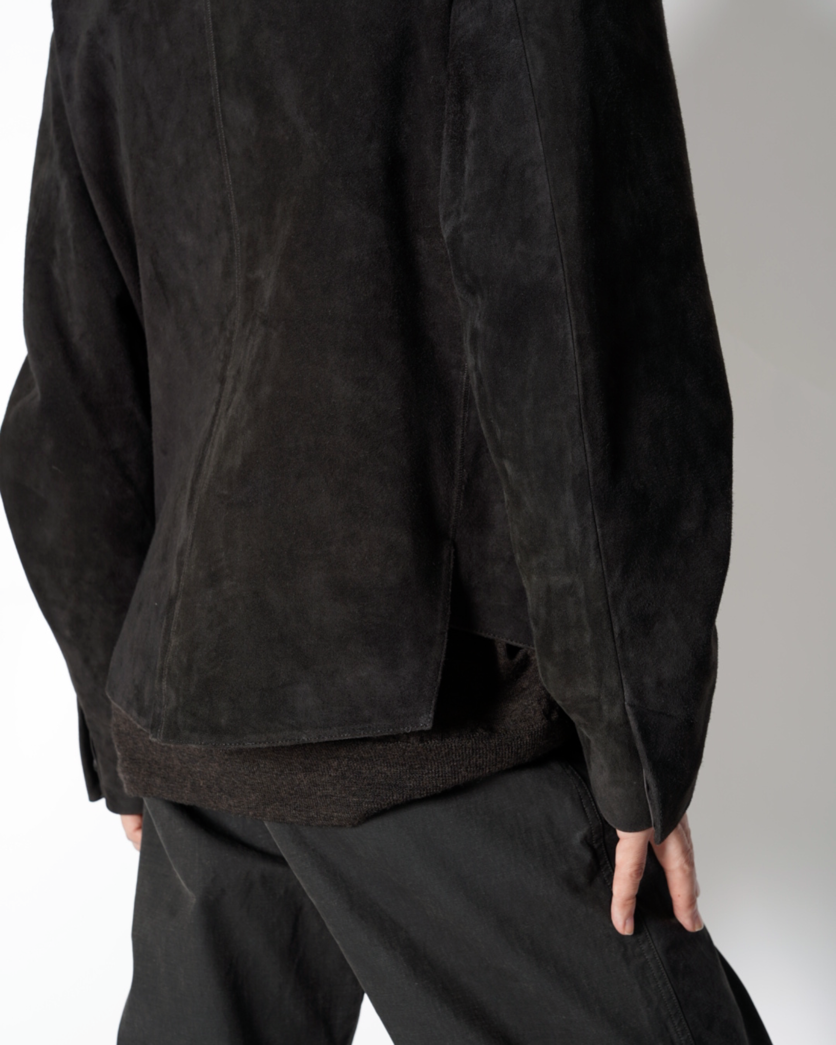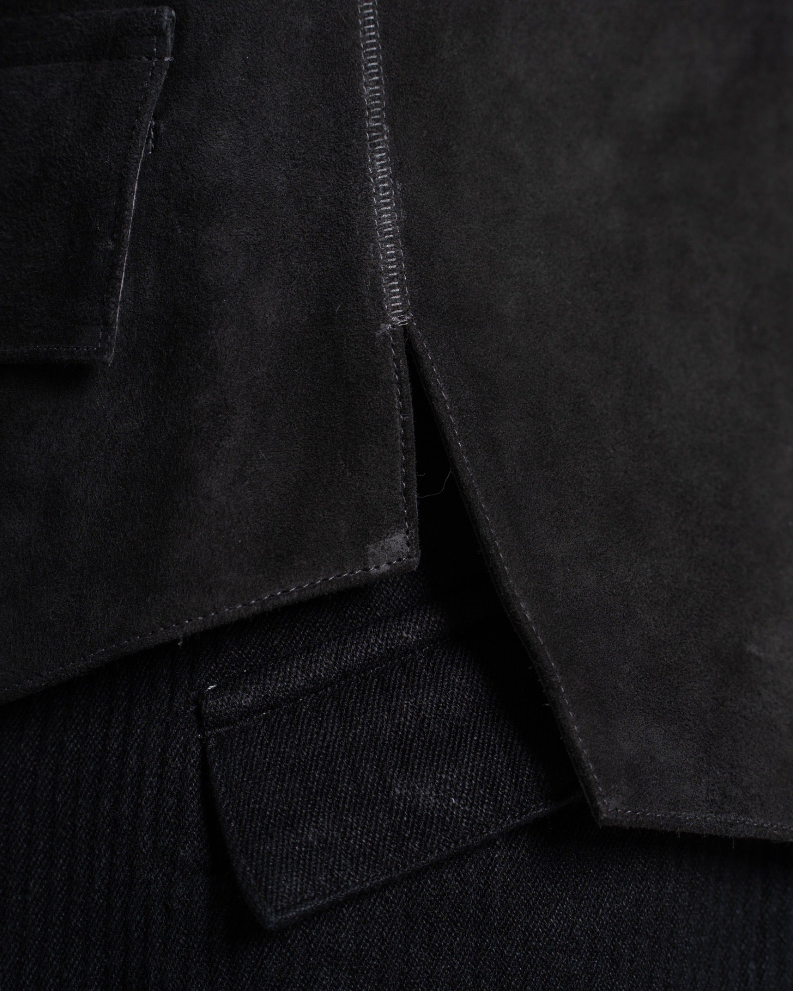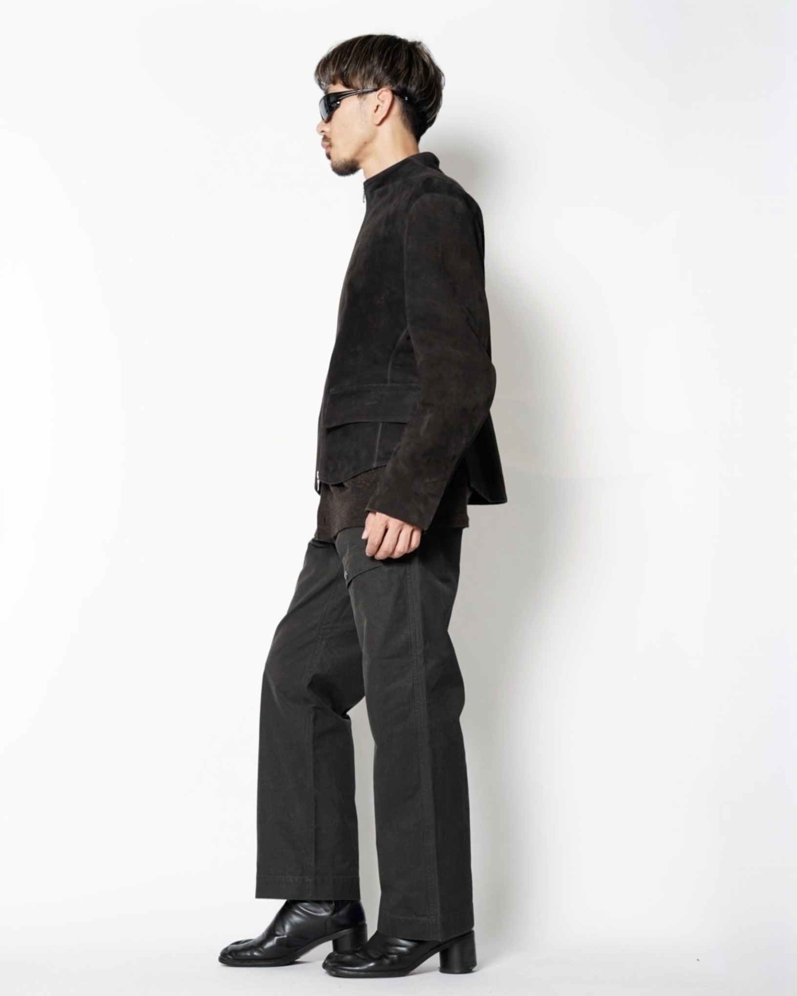 ・ボディーとなるスウェード面は手間暇をかけて繊細にシェービングした後にワックス加工を施しており、微細で上品な起毛感がありながらも、レザーらしい力強いマットな風合いとしっとりとしたタッチを実現しています。
