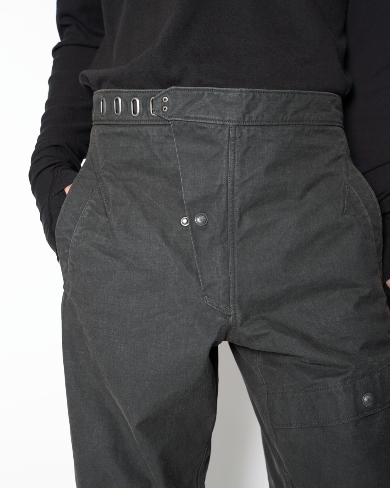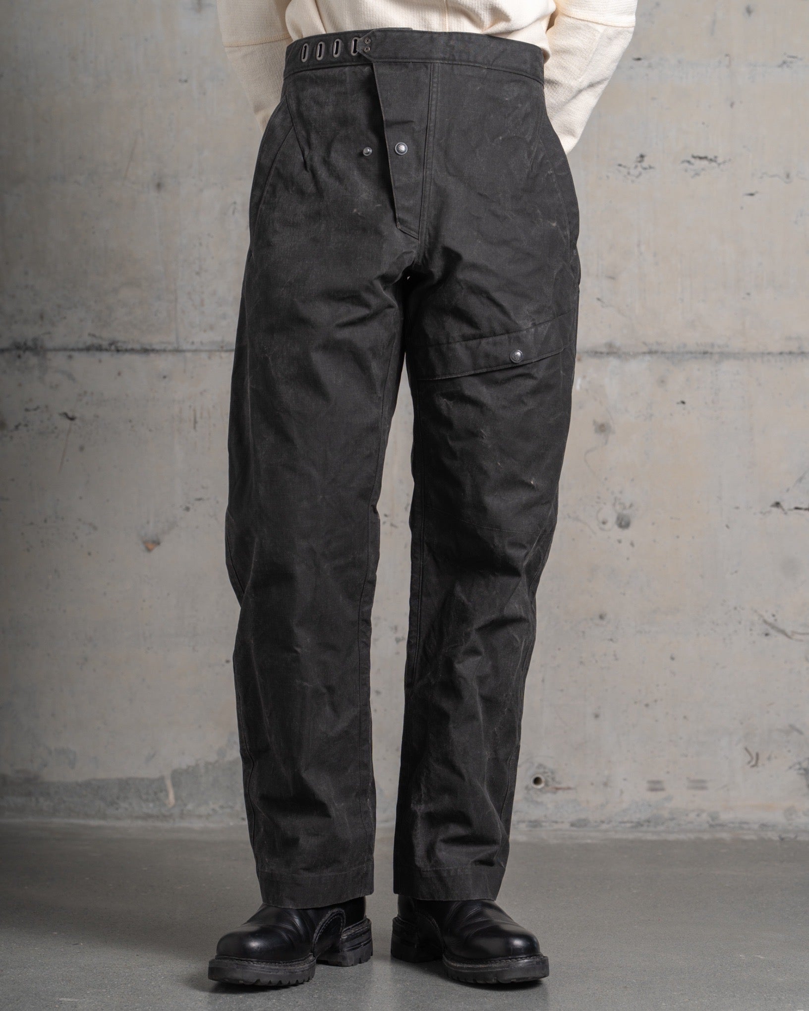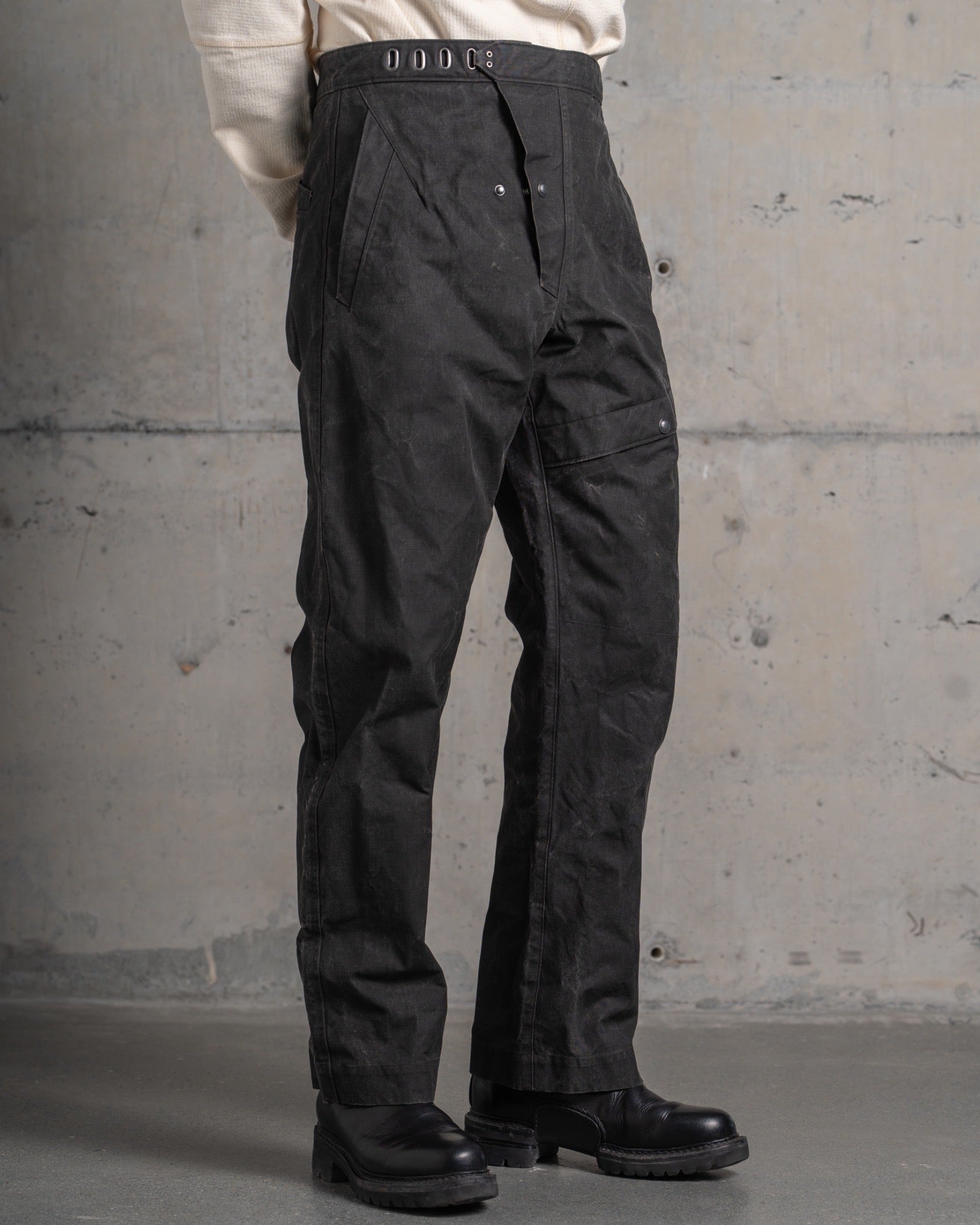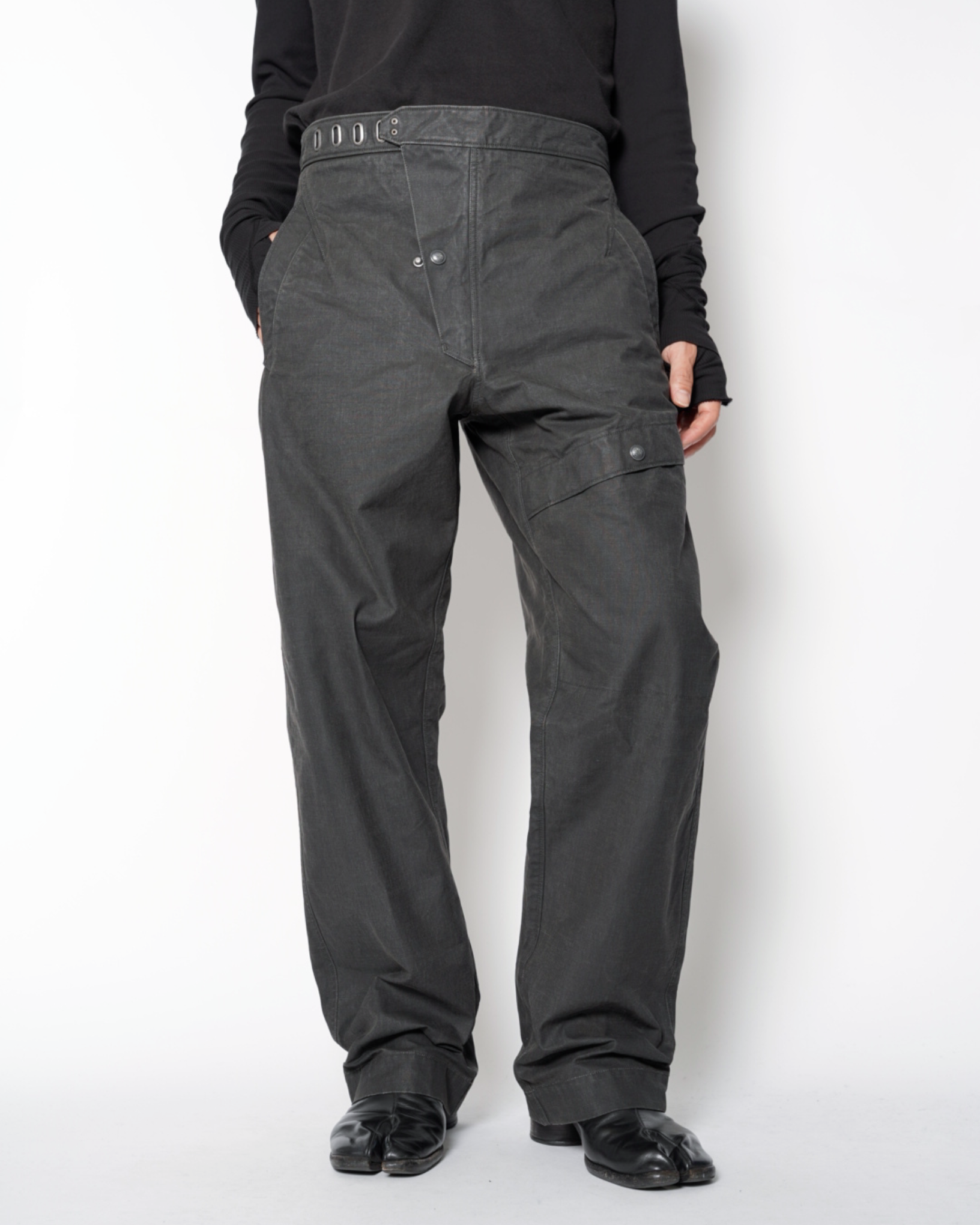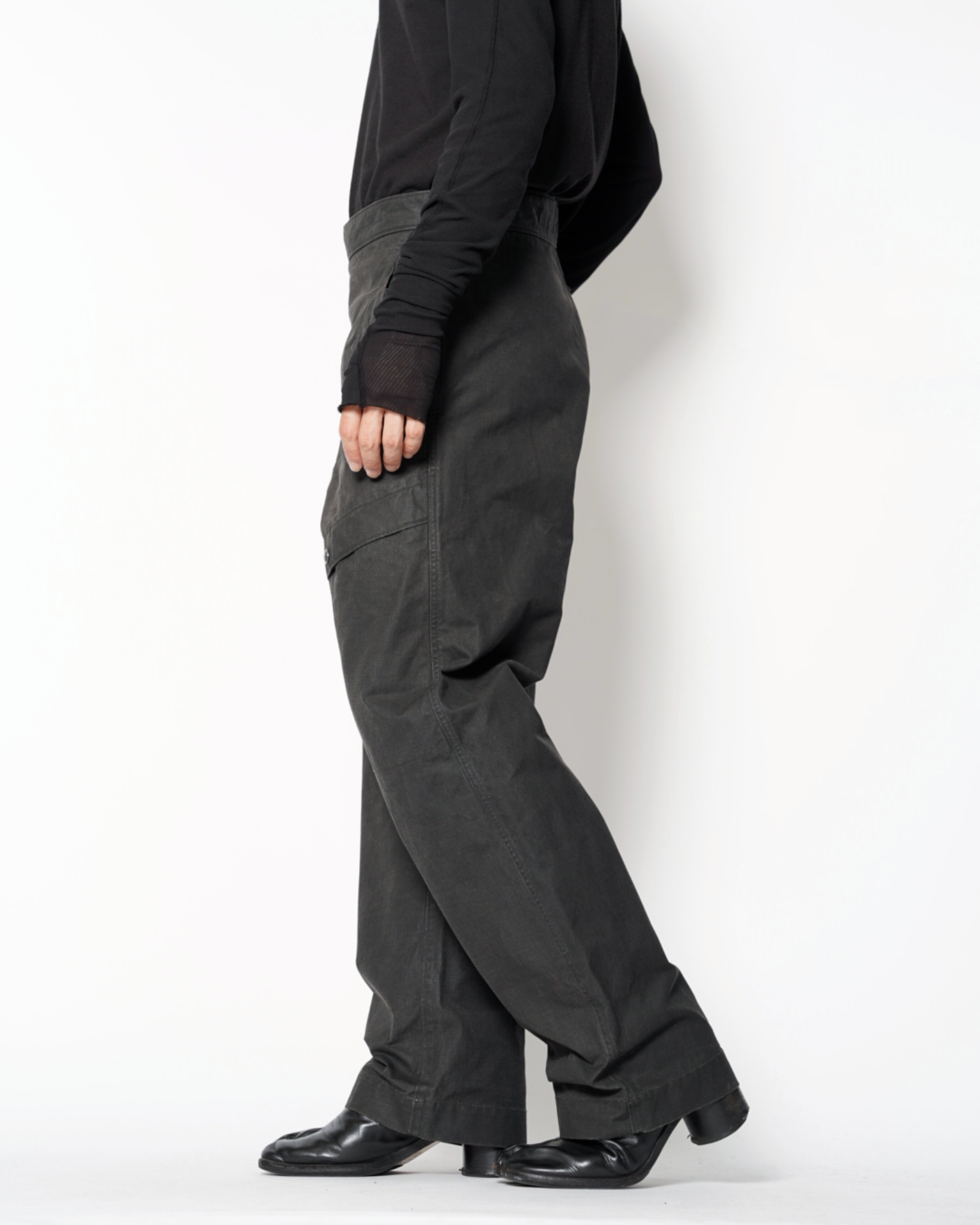 ・無骨なデザインと生地感に反して無駄のないシルエットとなっており、スタイリングを問わずに穿いていただけます
