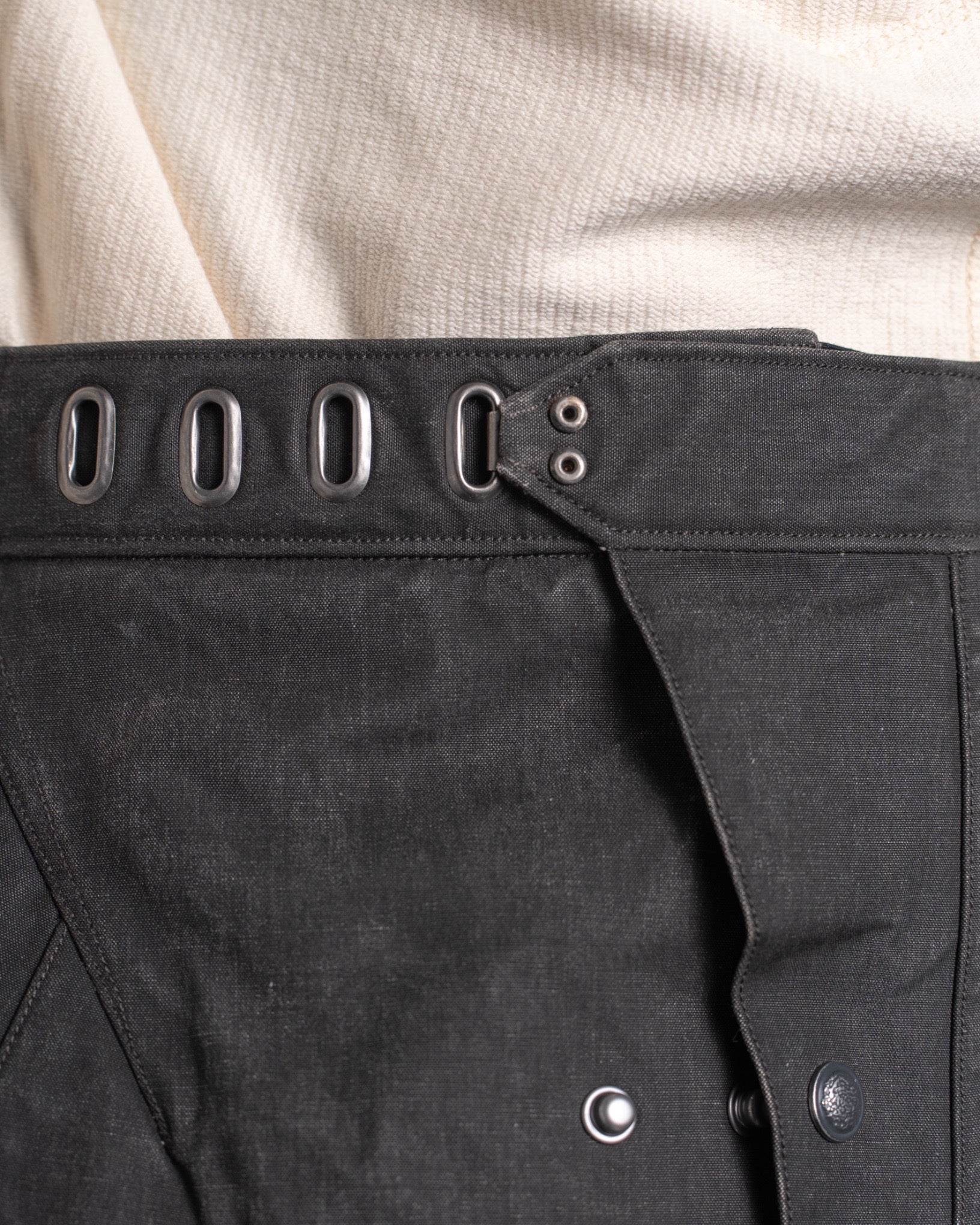・2段階調整できるフライのスナップボタン、4段階調整できるフックシステムによりサイズ感を複数に渡って調整できます。