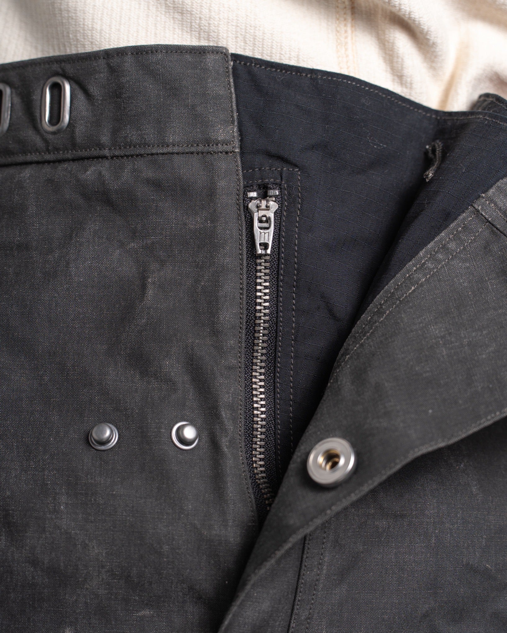 ・オフセットポケット、スラントフライ、フックシステムのディテールにより、ヴィンテージアーカイブの消防服や航空装備を彷彿とさせるデザインに。