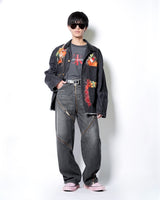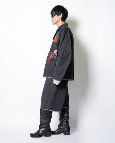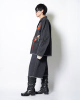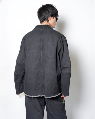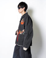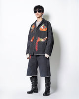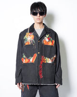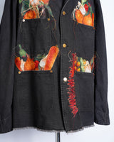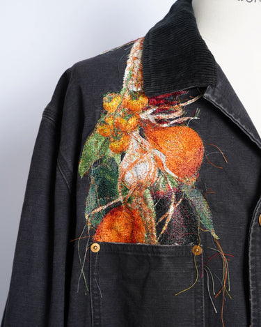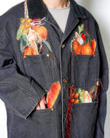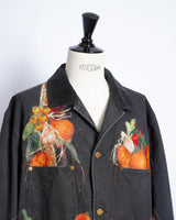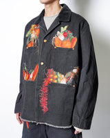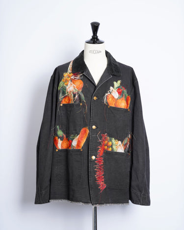 ・製品染めと洗いをかけたダック生地に、玉ねぎ、人参、ピーマン、にんにく、赤唐辛子、茄子などの野菜をリアルな刺繍で施したワークジャケット。