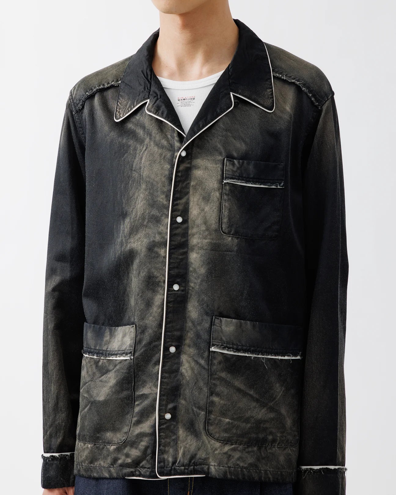 ヴィンテージパジャマシャツを思わせるコードパイピングやパッチポケット、さらにウエスタンシャツ風のパール調スナップボタンなど、古着好きの心をくすぐるディテールを贅沢に盛り込みました。