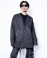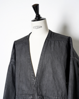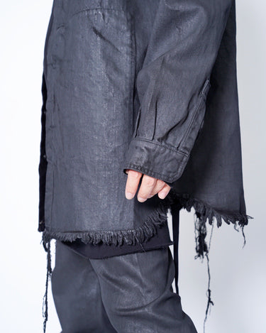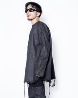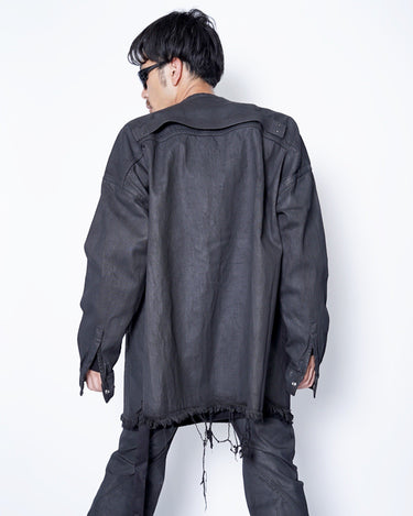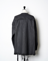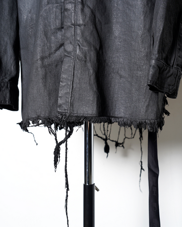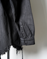 ・LARRY SHIRTらしいミニマルなデザインをベースにしながら、ダークなテイストのデニムと裾のローエッジにより、退廃的なニュアンスを感じさせるアイテムに。