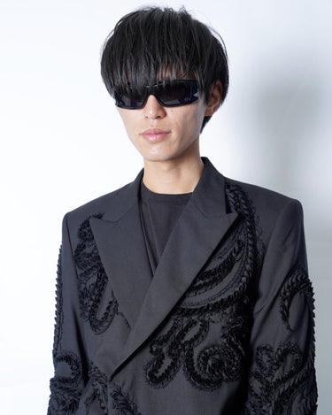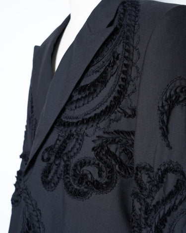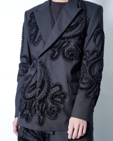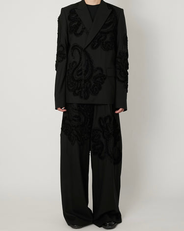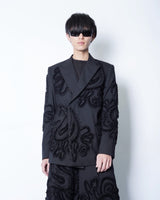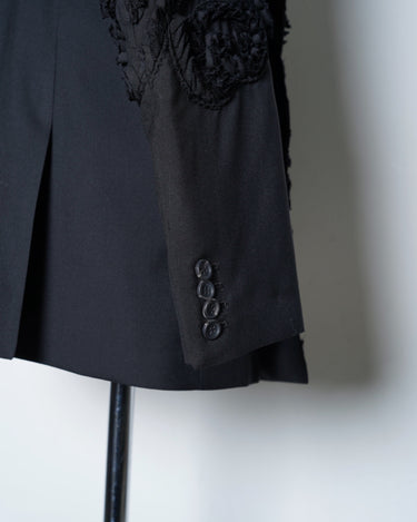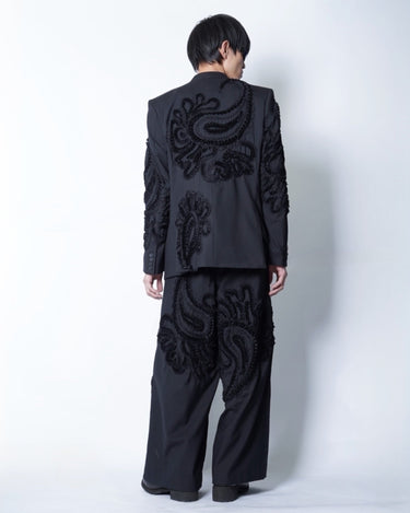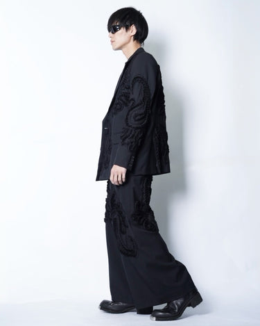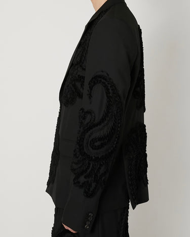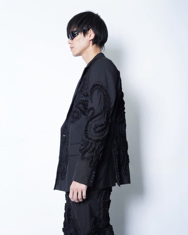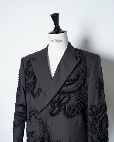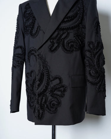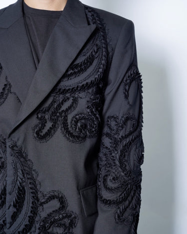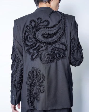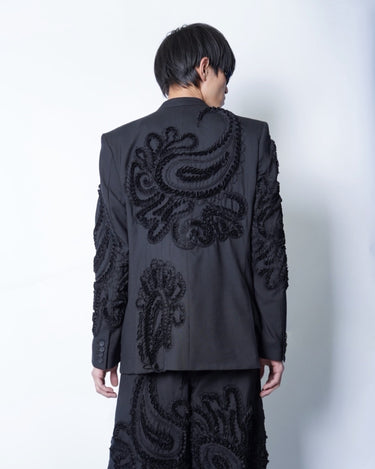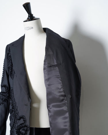 彫刻的な立体刺繍を全面に施したテーラードジャケット。