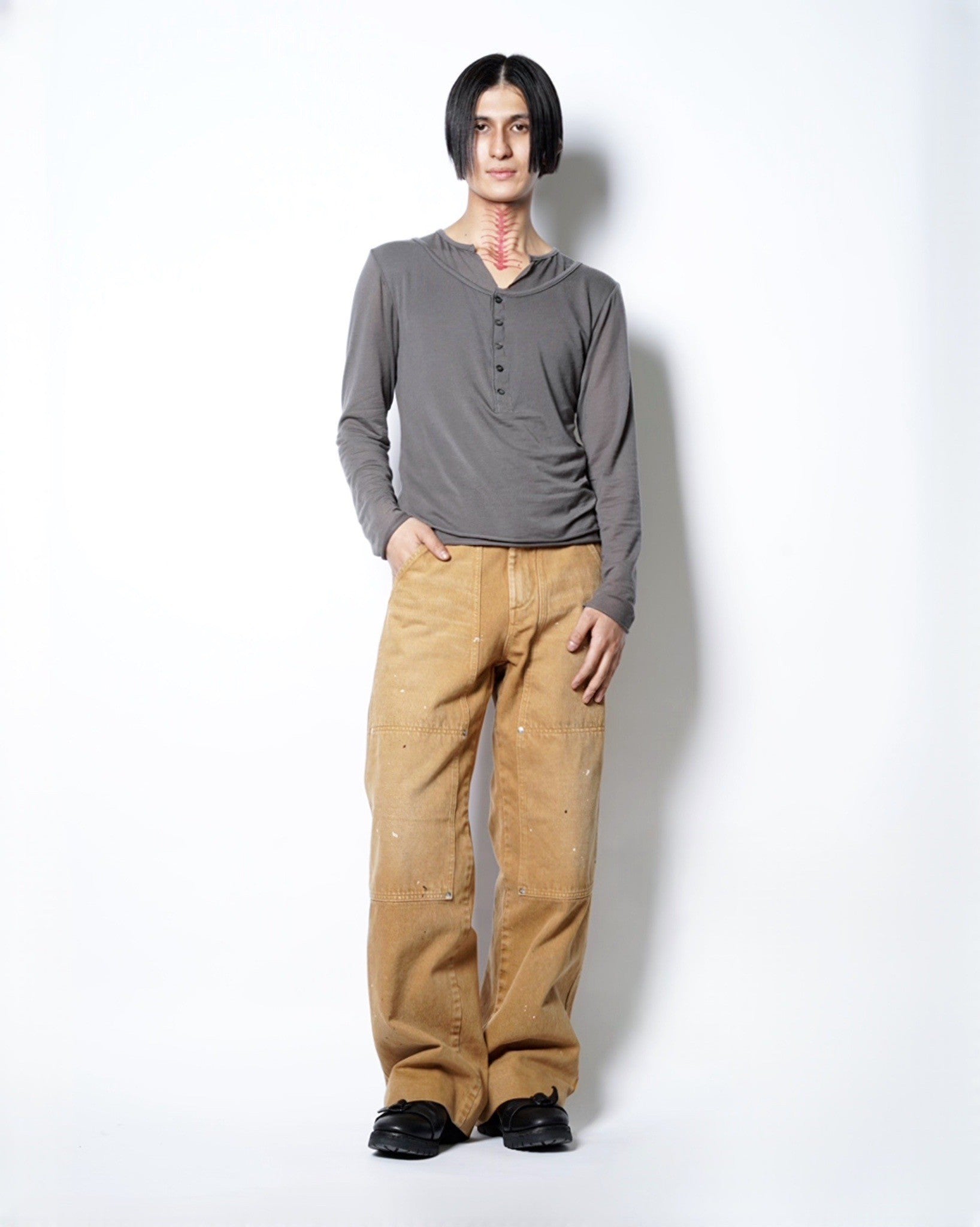 ・ポケットを兼ねたダブルニーがワーキッシュなアクセントに。