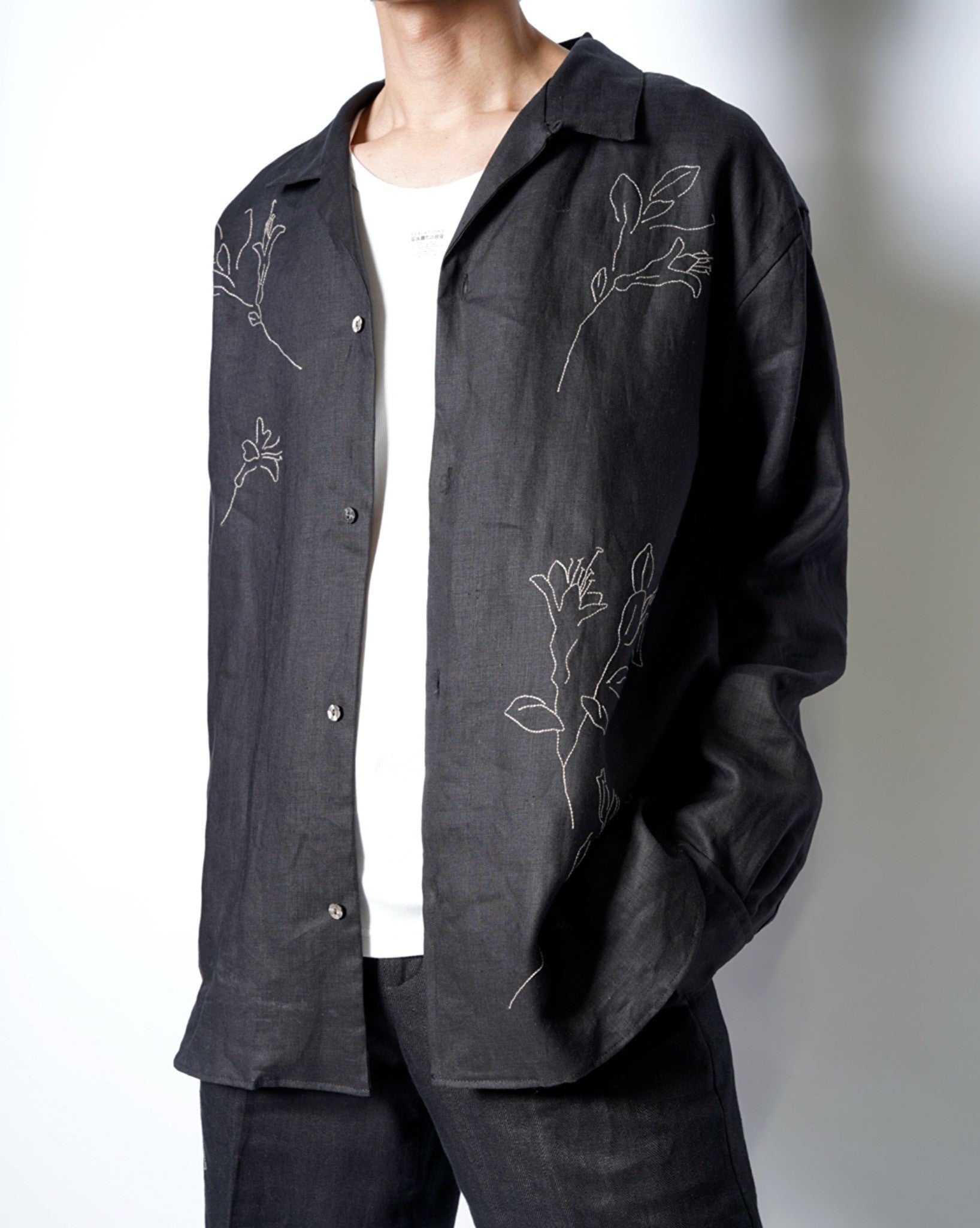 ・オープンカラーの軽快なリネンシャツで春夏らしい清涼感のある仕上がりに。