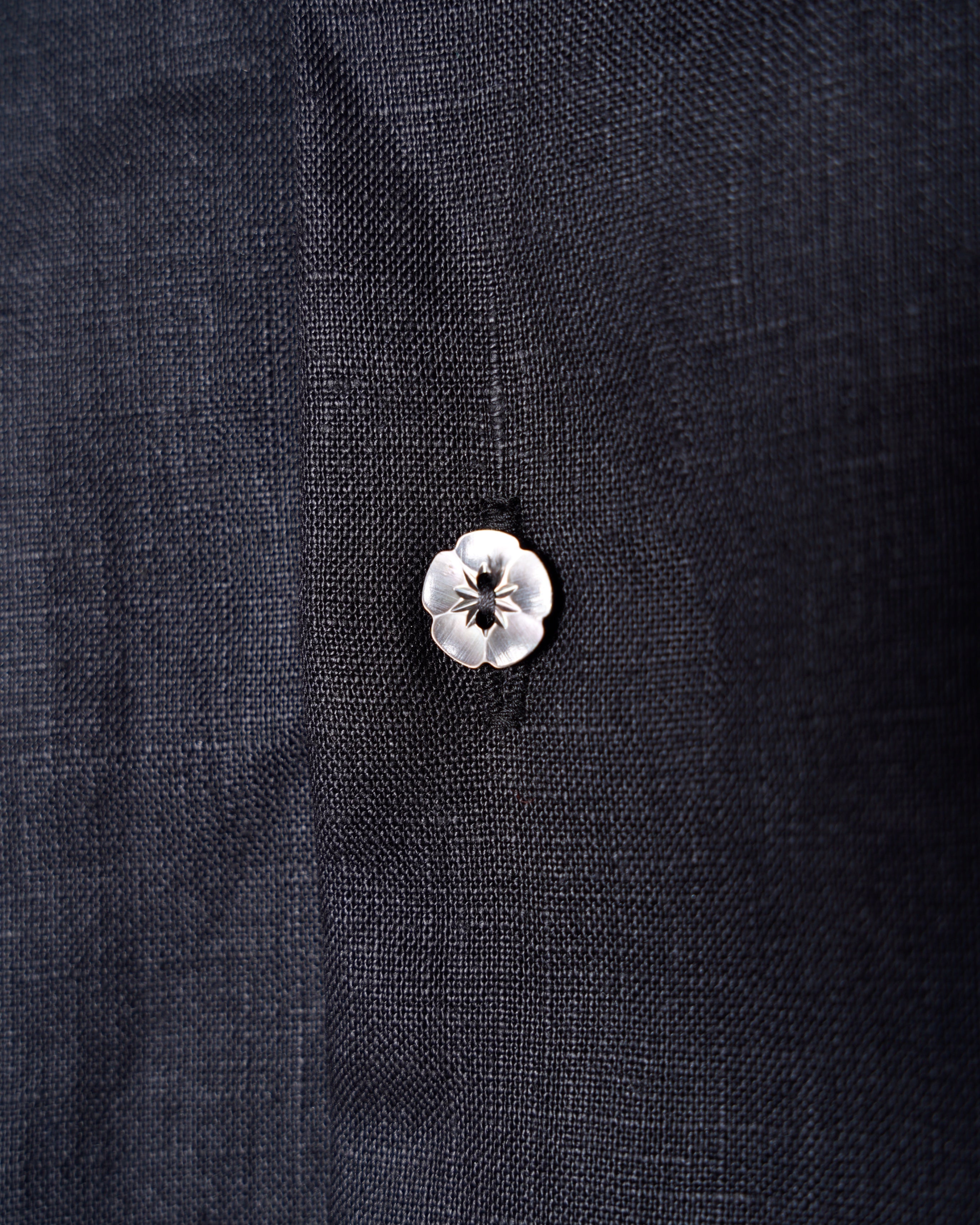 ・弾力感、滑らかなタッチ、光沢のある質感のリネン素材となっており、上品な印象で着られる生地感。