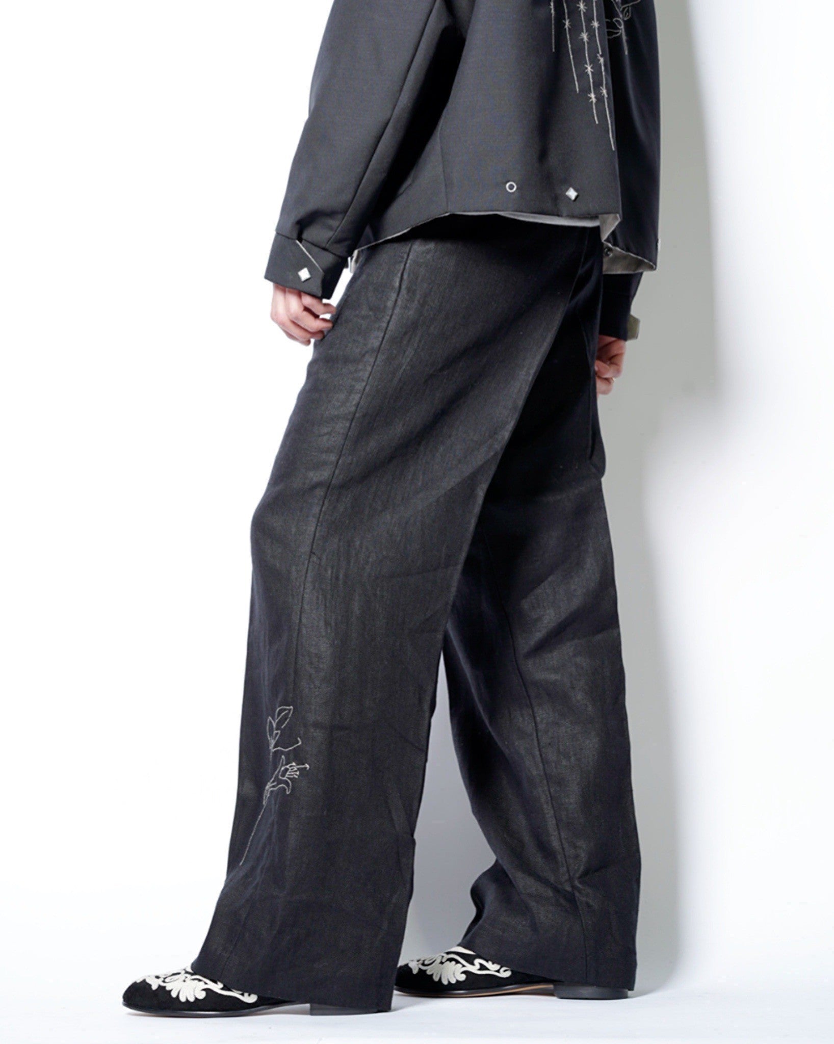 ・弾力感、滑らかなタッチ、光沢のある質感のリネン素材となっており、上品な印象で着られる生地感。