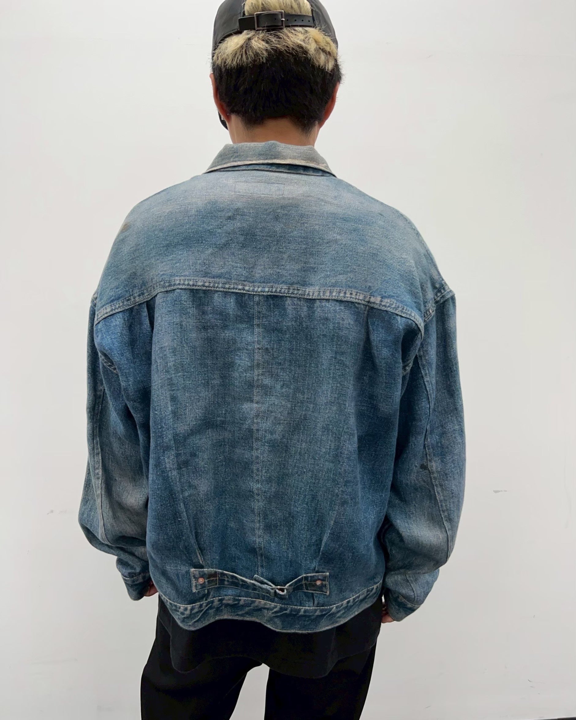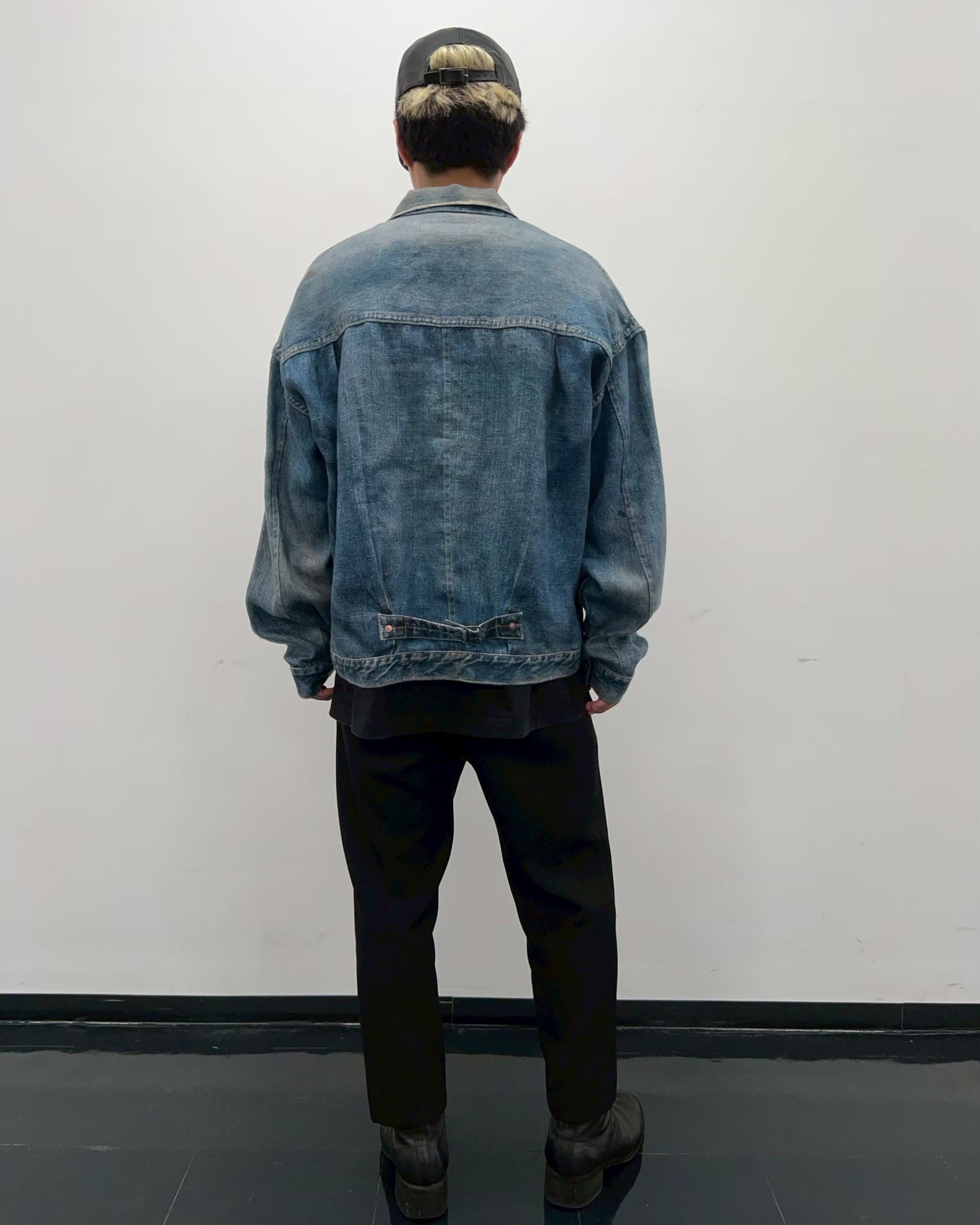 VINTAGE PRINT LINEN TRUCKER JACKET