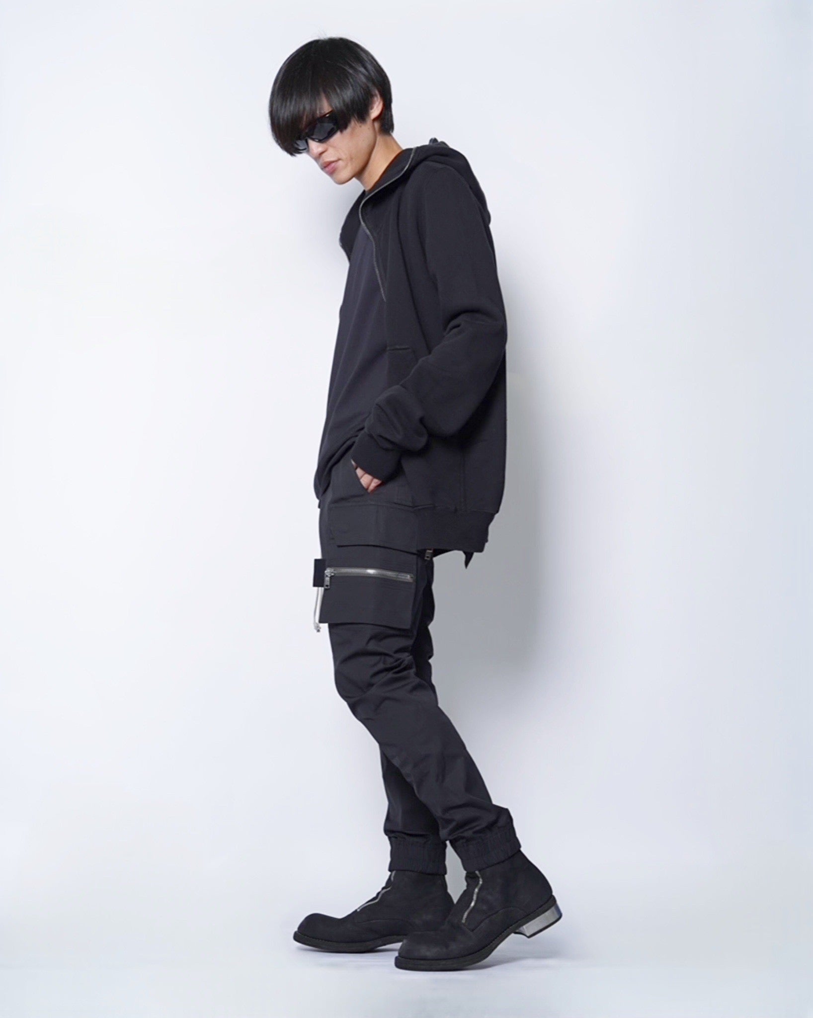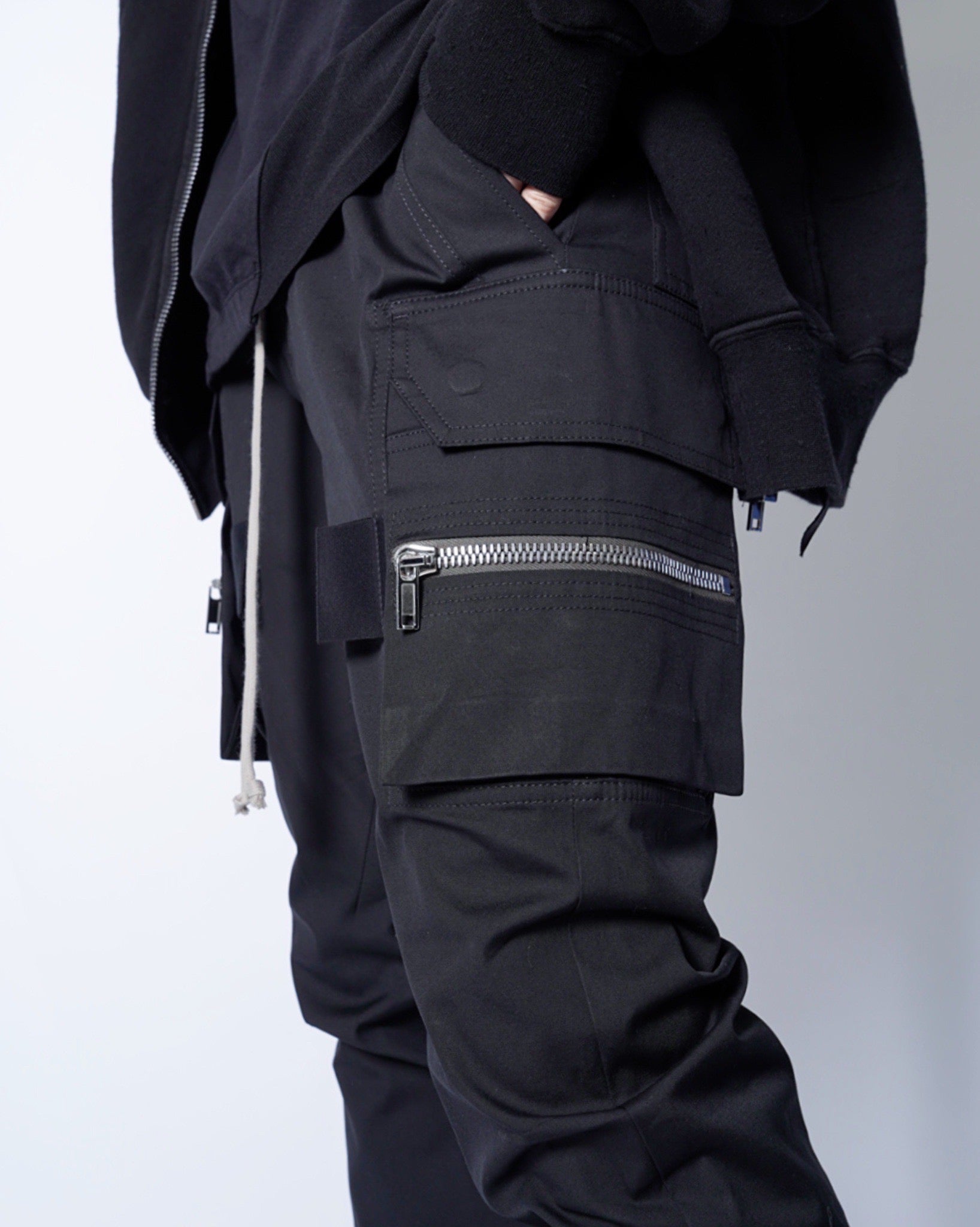 ・カーゴポケットには無骨でメタリックなジップを使用しており、クールで硬質的なデザインを際立てています。