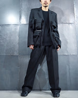 構築的なボクシーシルエットの仕立てを