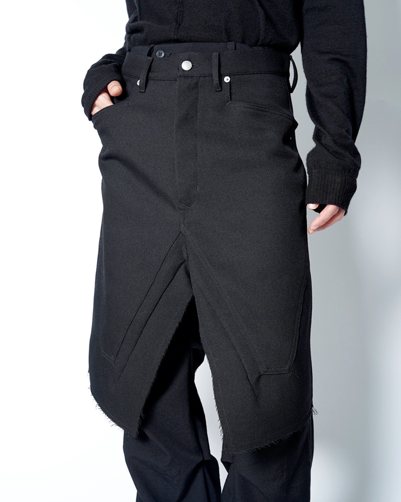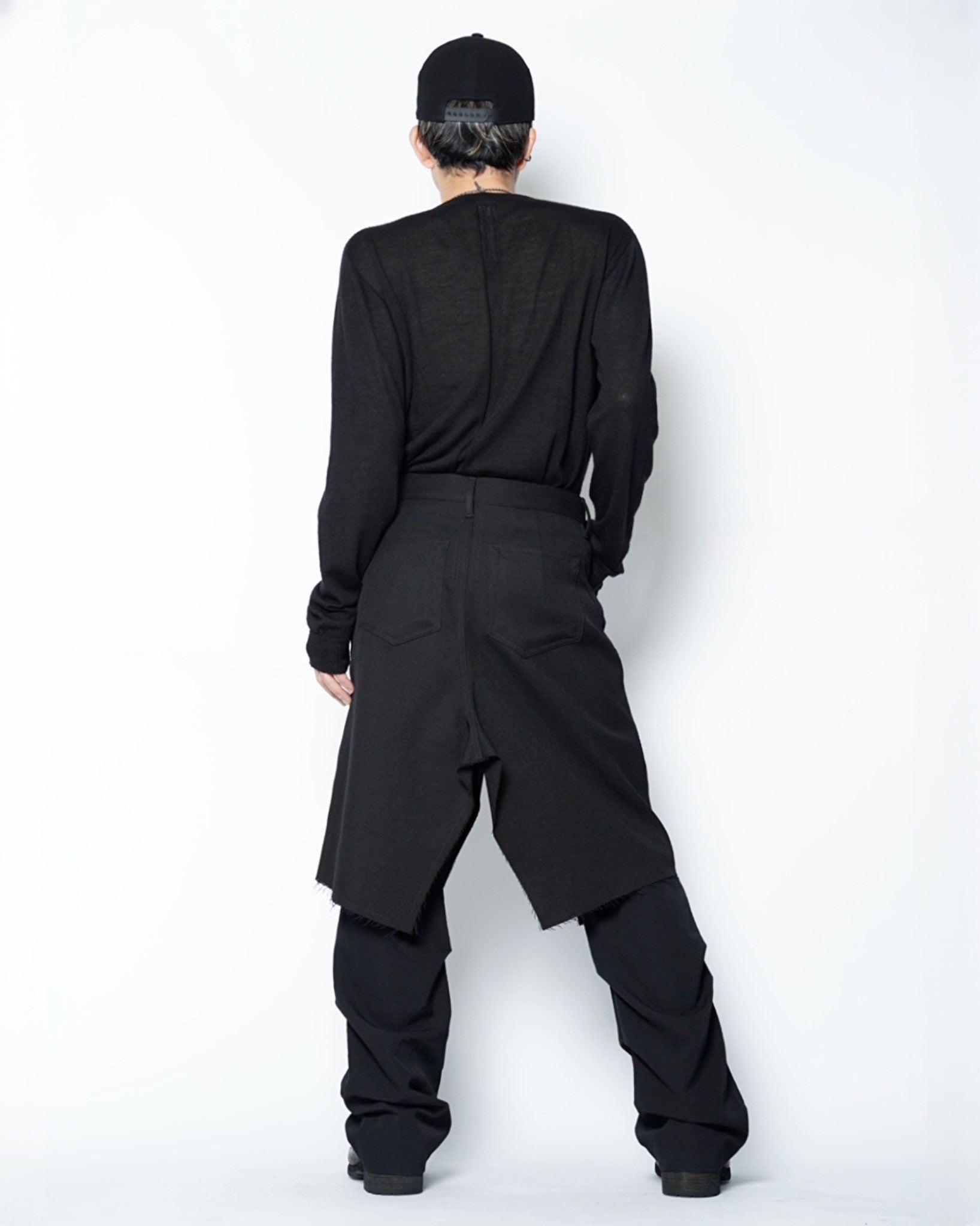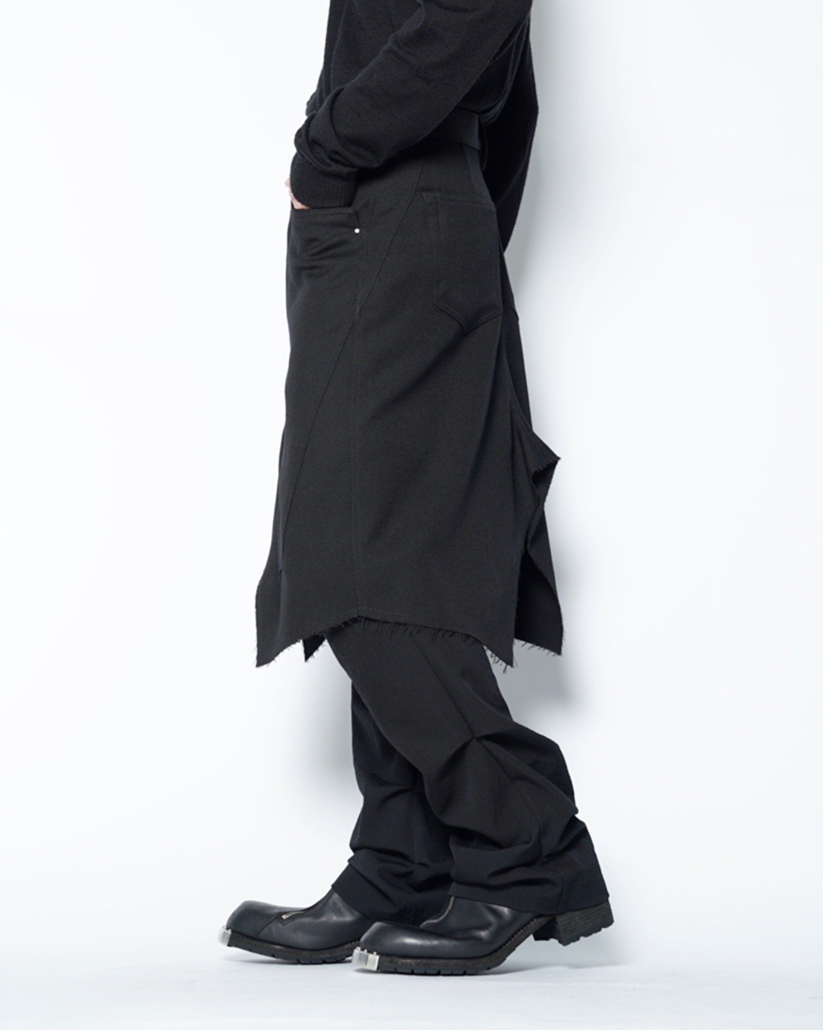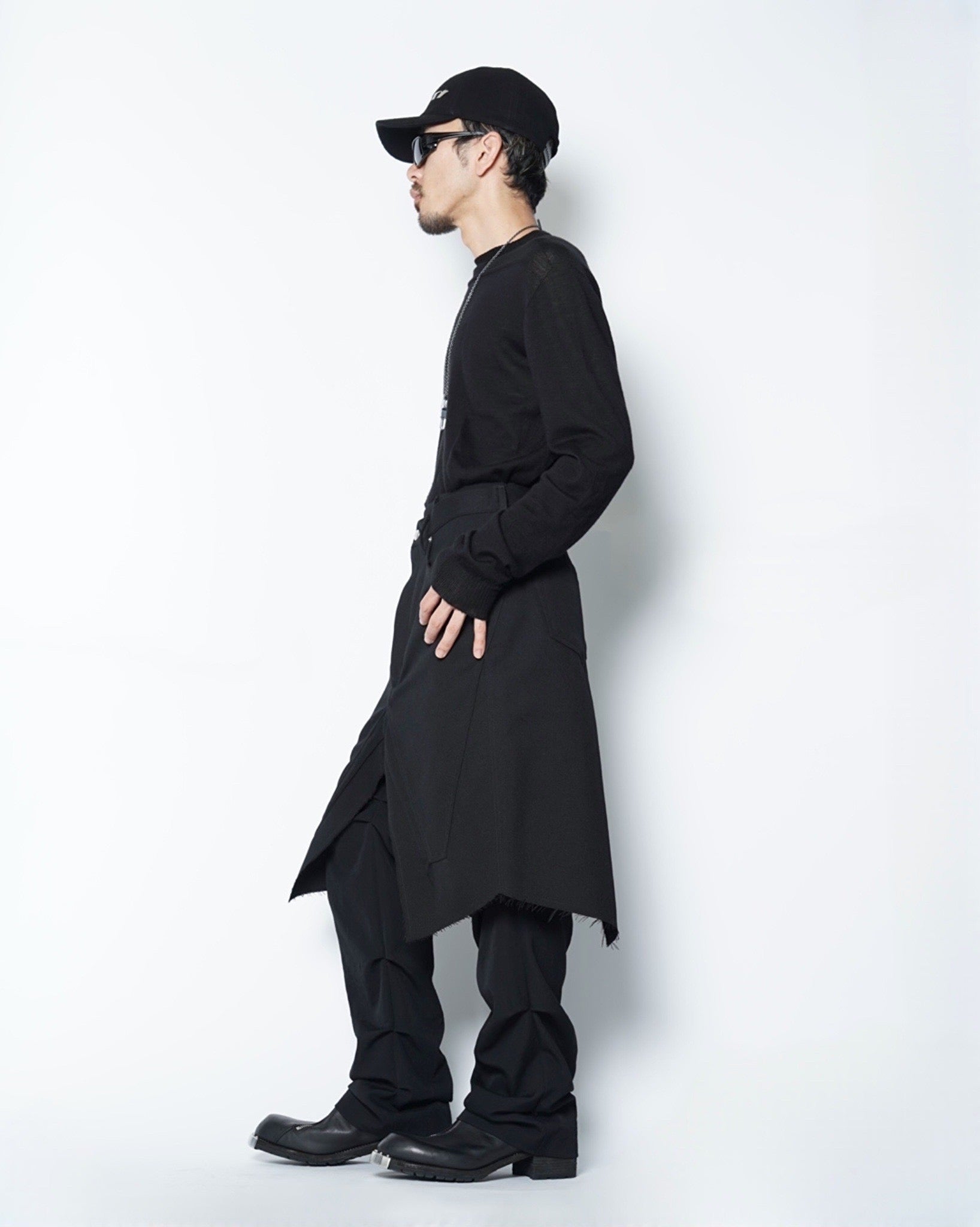 ・裾は断ち切りとなっており、無機質な中にも退廃的な雰囲気を演出しています。
