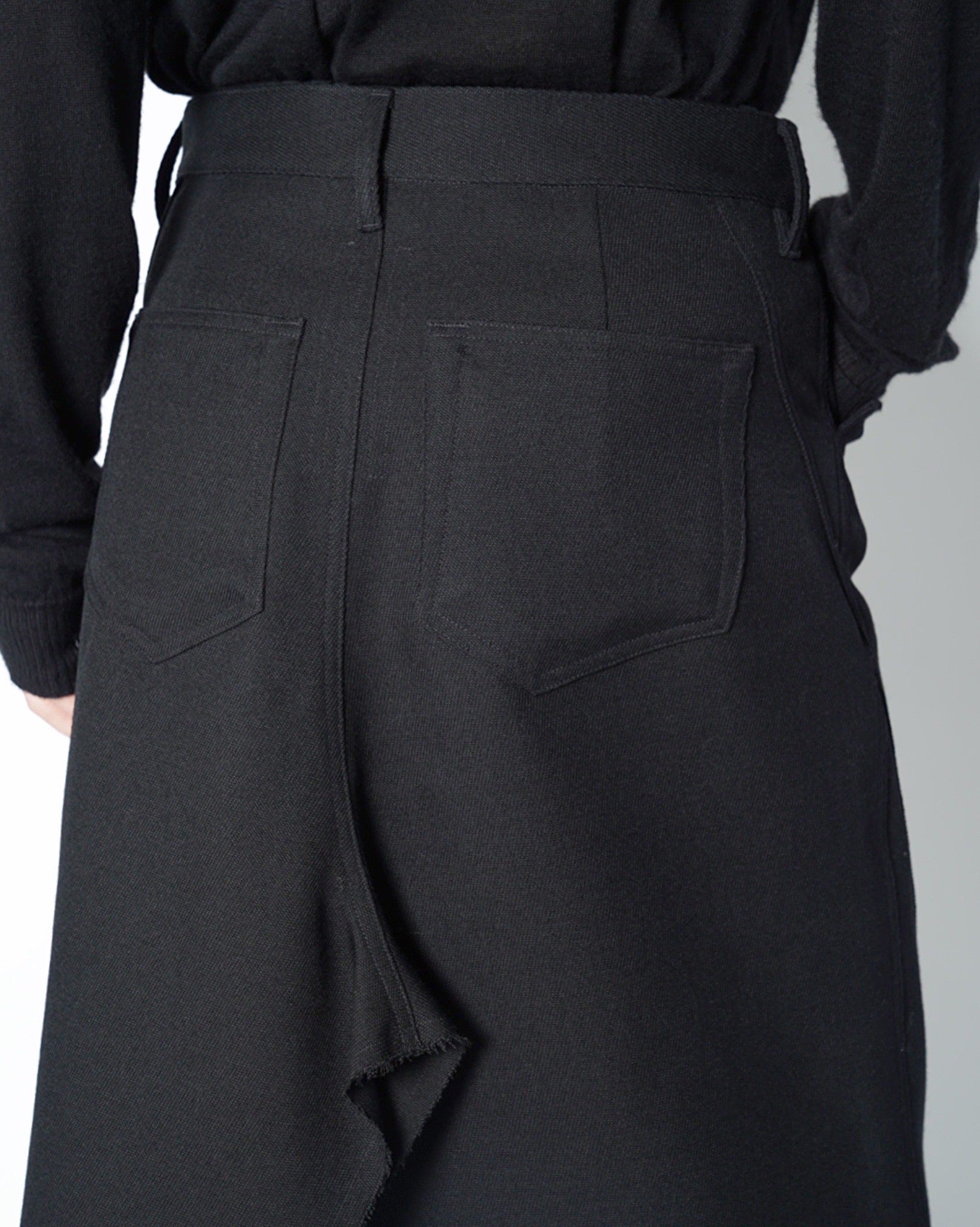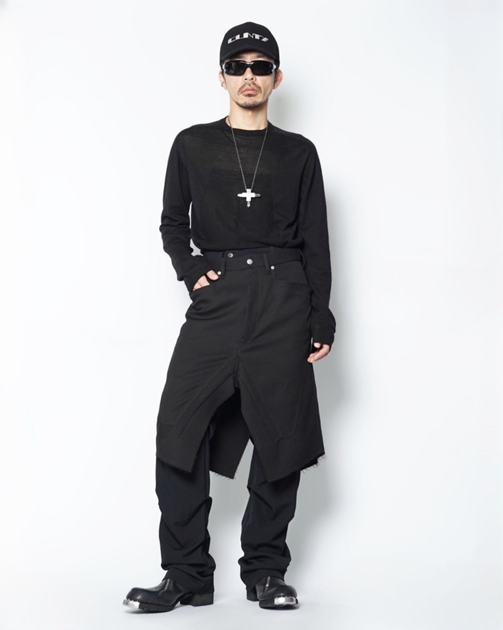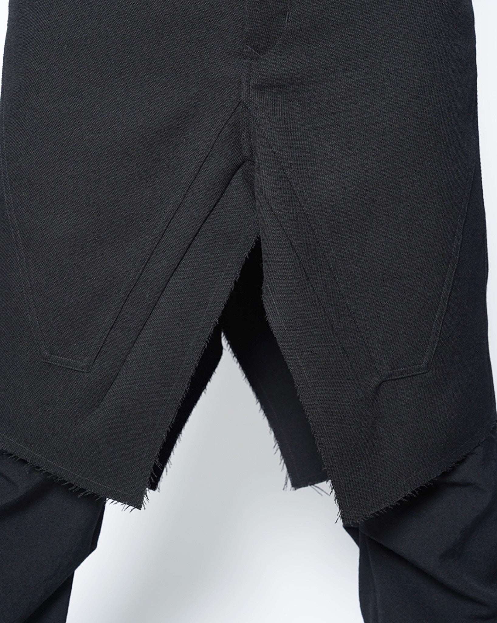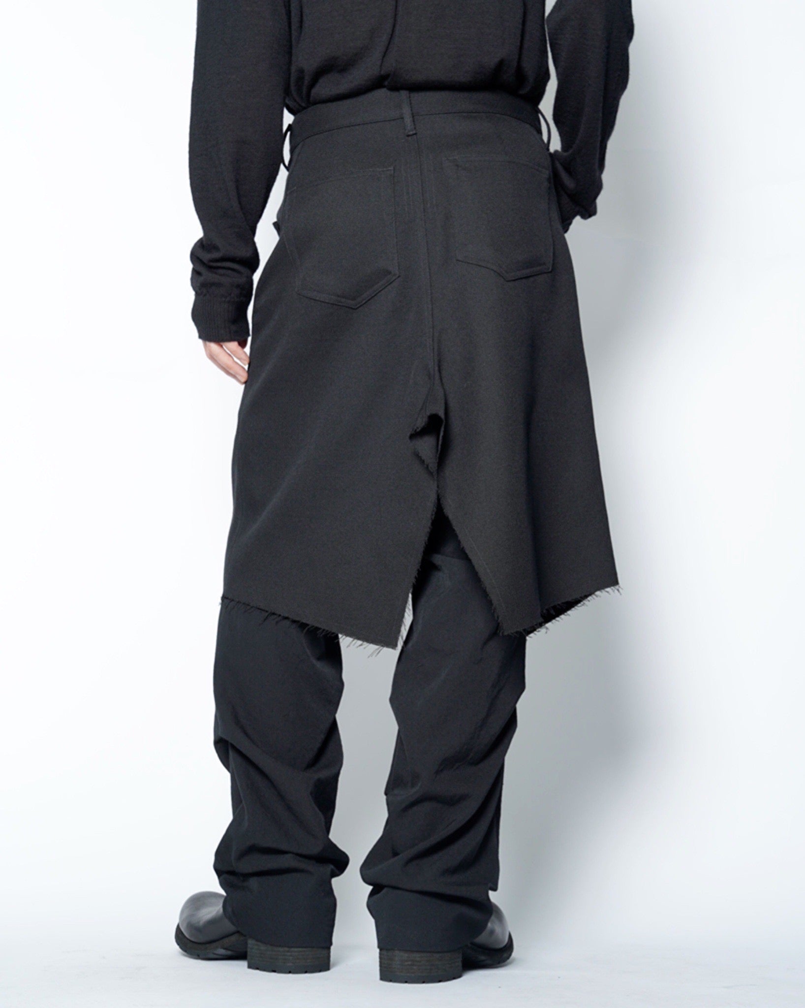 ・裾は断ち切りとなっており、無機質な中にも退廃的な雰囲気を演出しています。