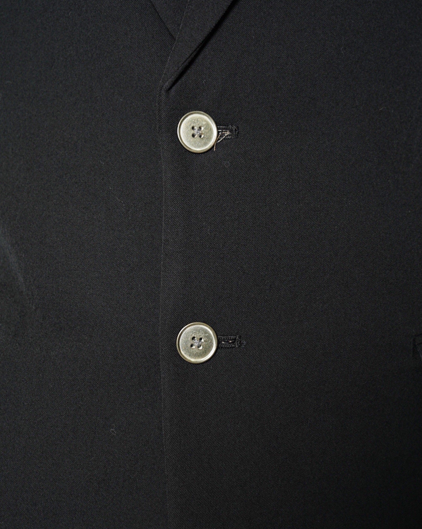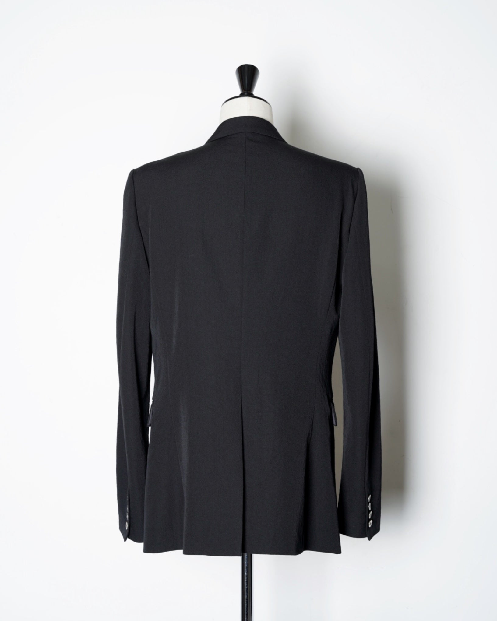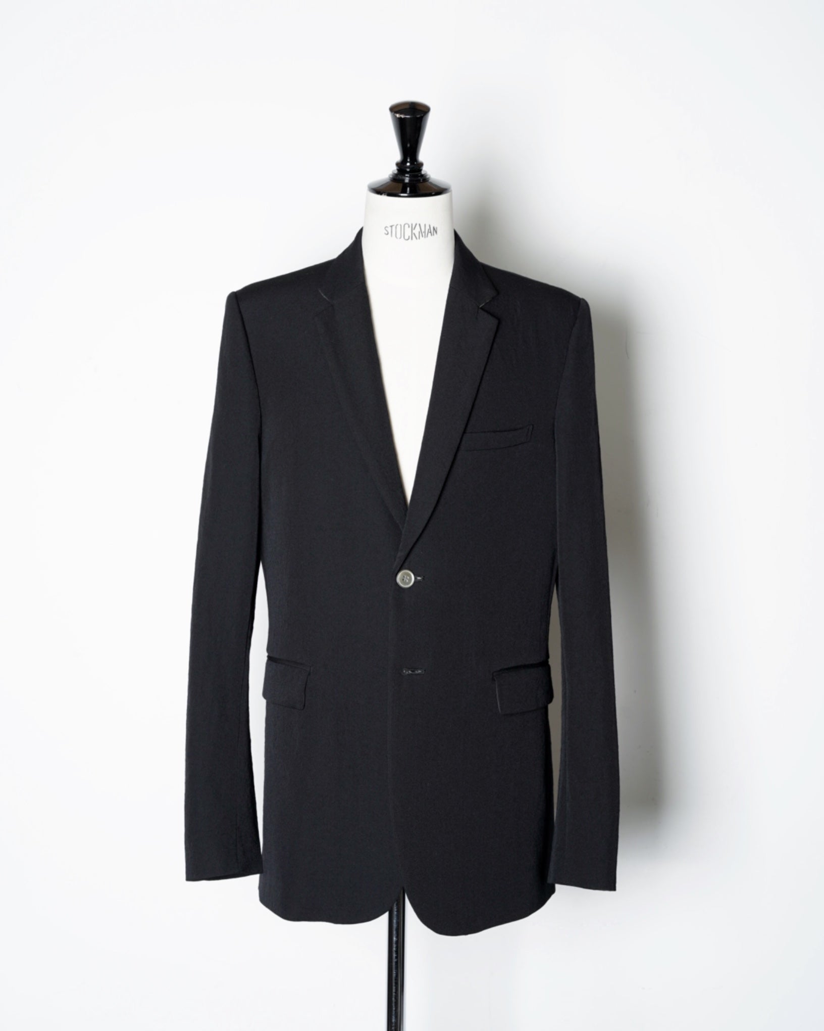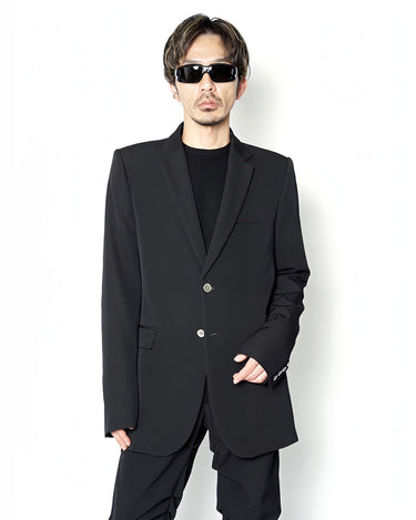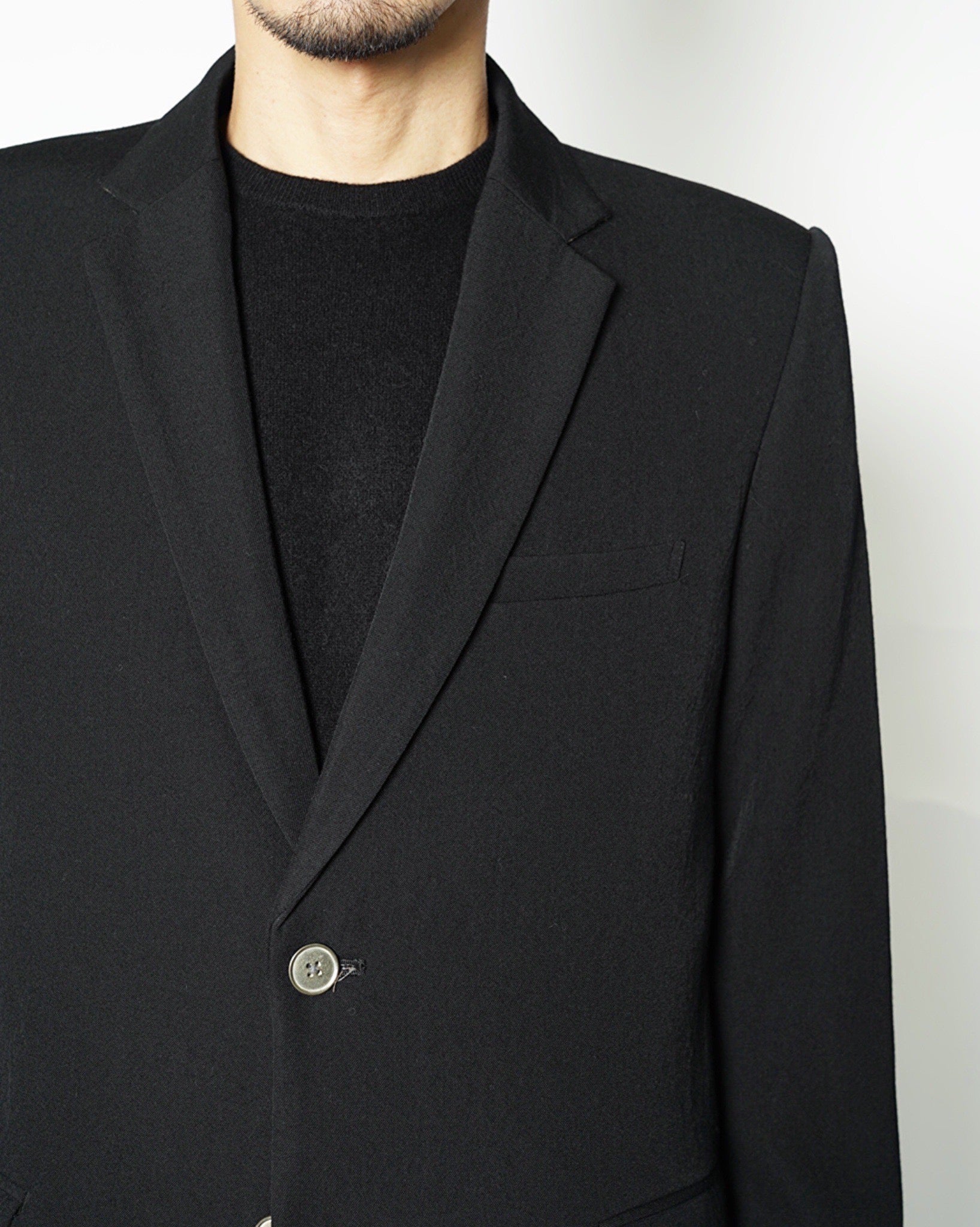 ・シングルで縦長のフォルムながらも、程よくしっかりとした肩のラインと重心低めのラペルとVゾーンでスタイリッシュになり過ぎない懐の深い仕上がりに。