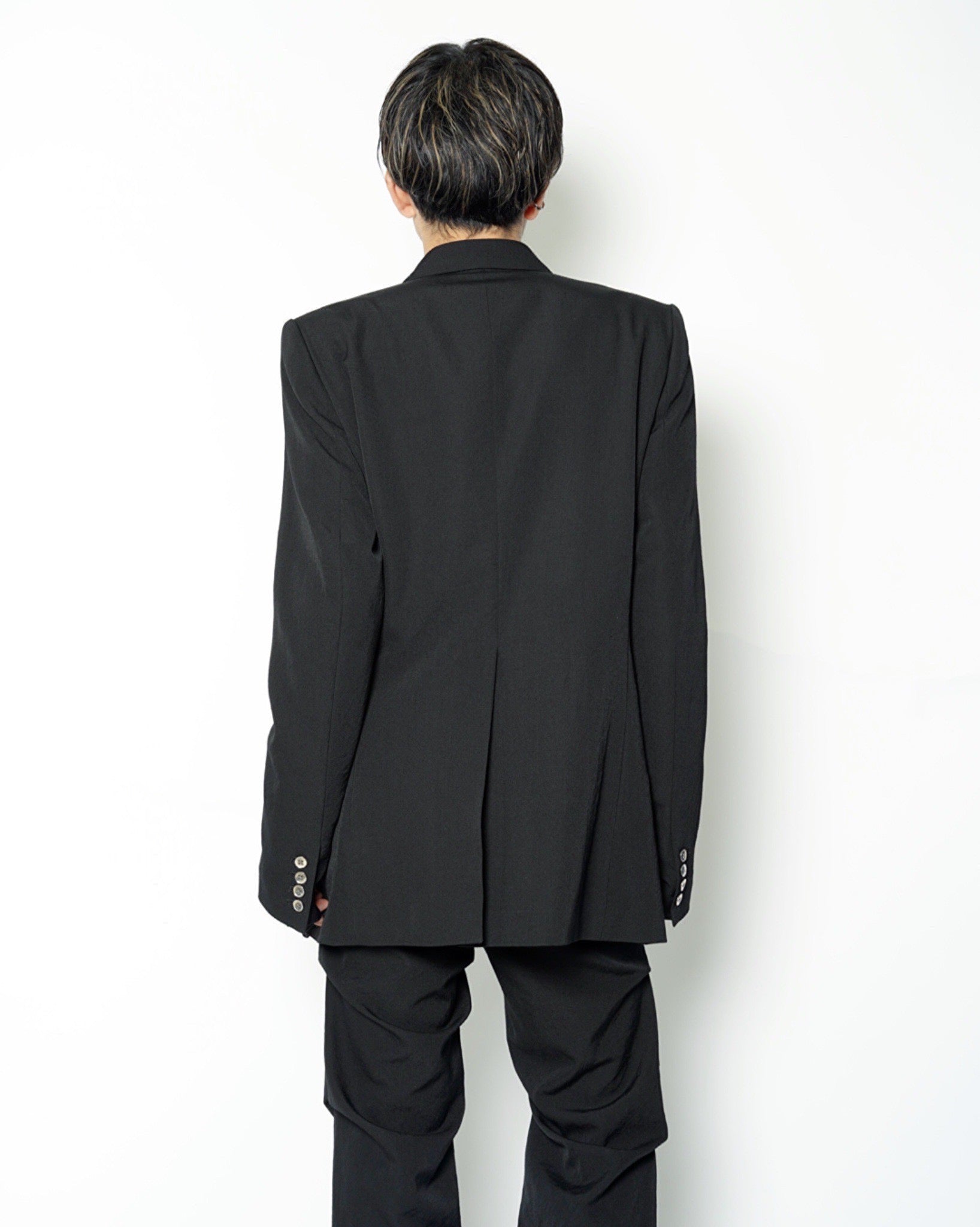 ・構築的な肩回りとメリハリをつけるようにウエストは軽くシェイプされており、モードさのある色気を演出。