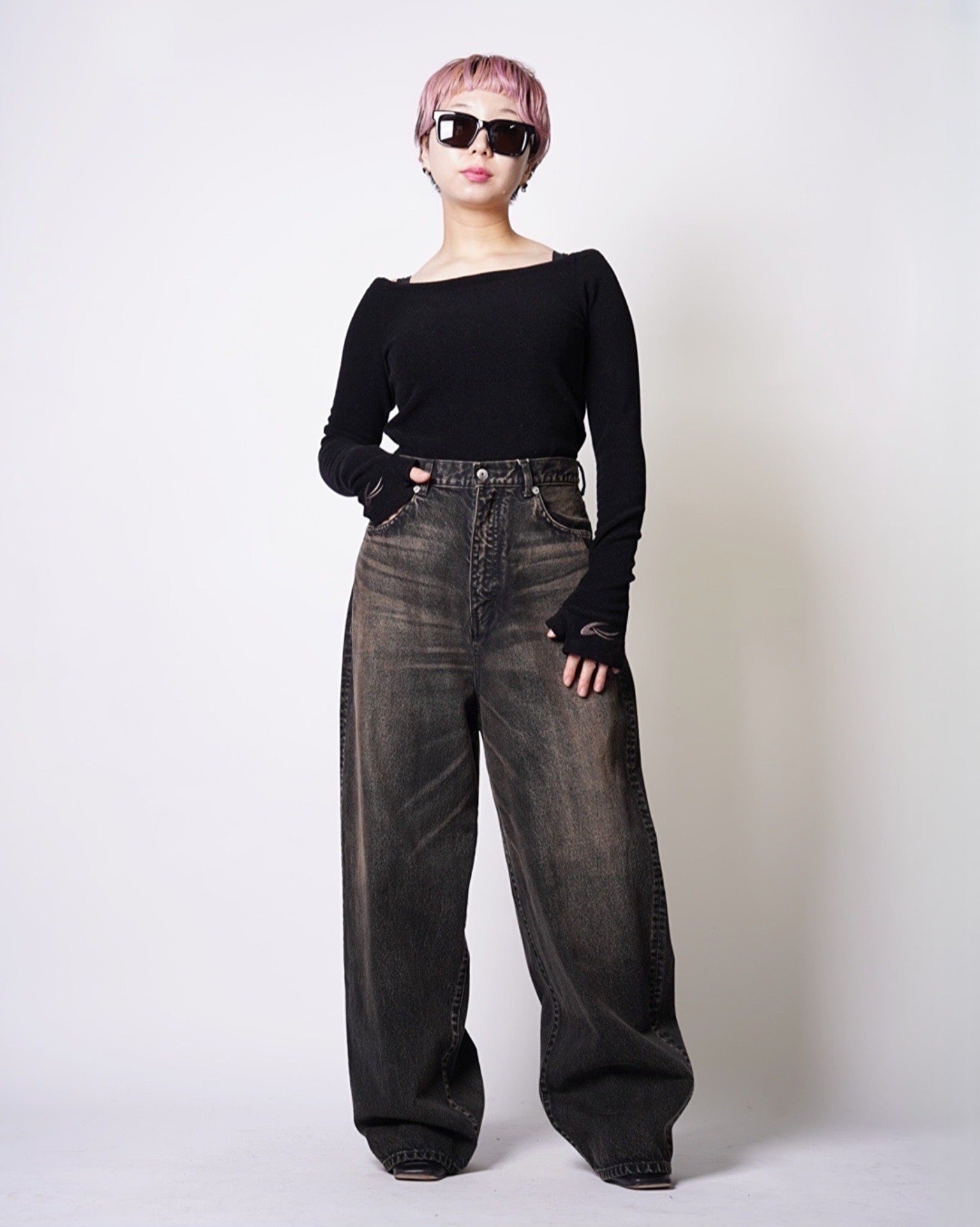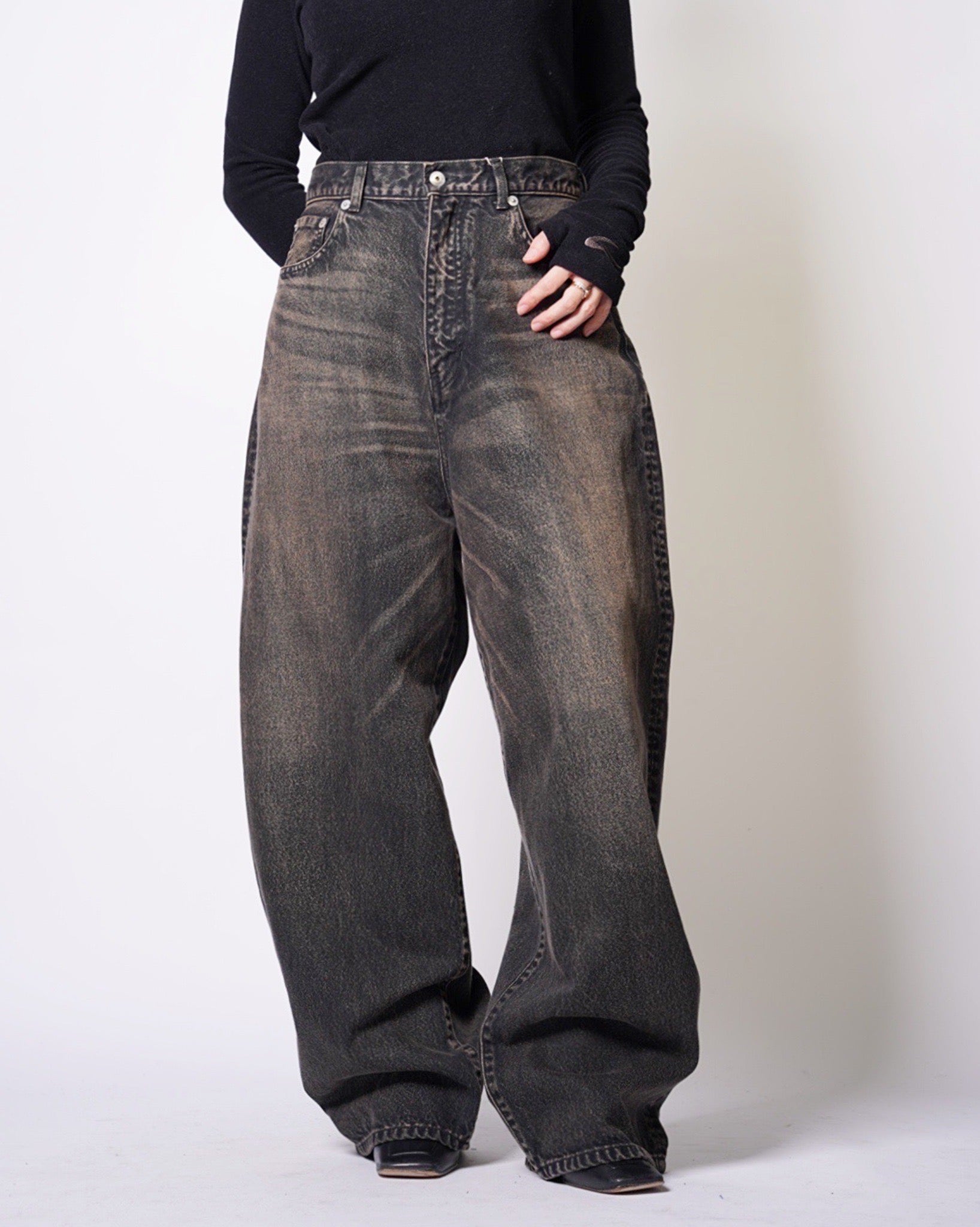 ・USED加工を施したユニセックス仕様のバギーデニム。