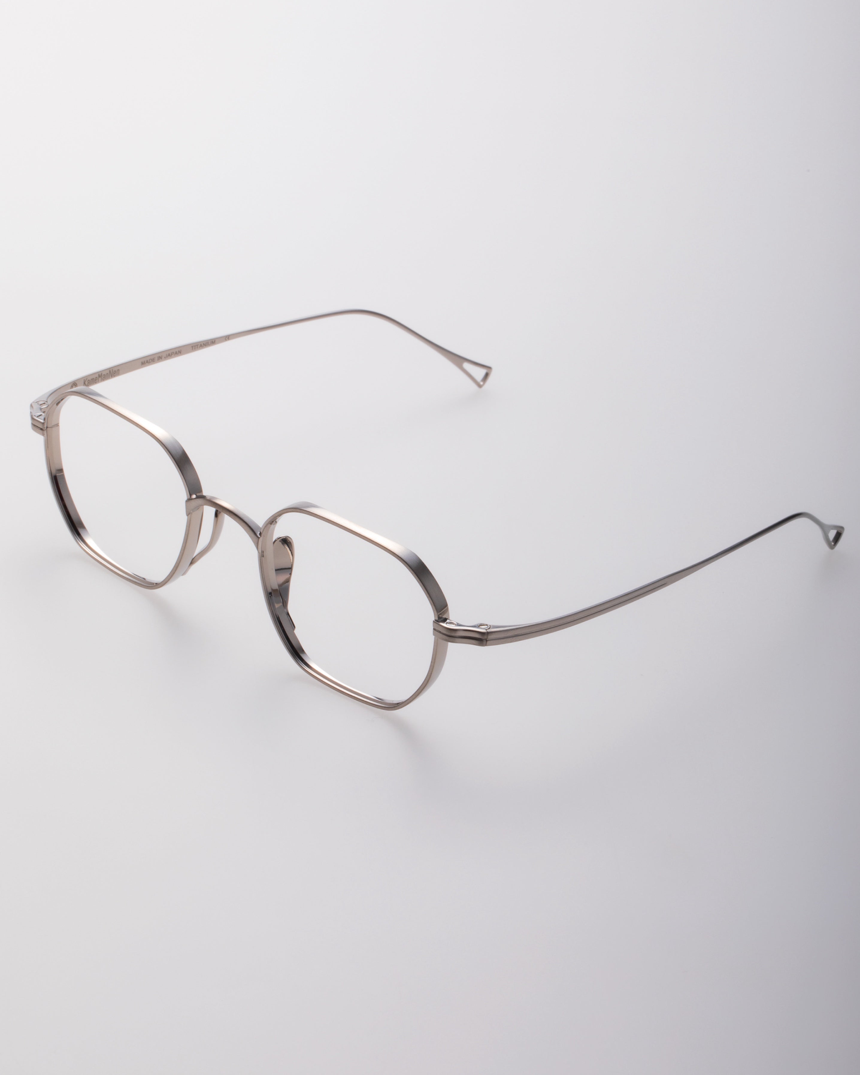 KMN9917はクラシカルな八角形をワイドにアレンジした、建築的な美しさを湛えるモデル。 厚みのあるレンズをスマートに収めるための立体リム構造を採用し、抑揚のある断面がシャープな輪郭に奥行きを生み出します。 顔に乗せたときにフレームが主張しすぎないよう、パッドアームと鼻パッドも極力目立たない仕様に。 無駄を削ぎ落とした設計が、掛ける人の表情を引き立てます。 美しさは、構造から生まれる。KMN 9917は、理知的な佇まいを追求した一本です。