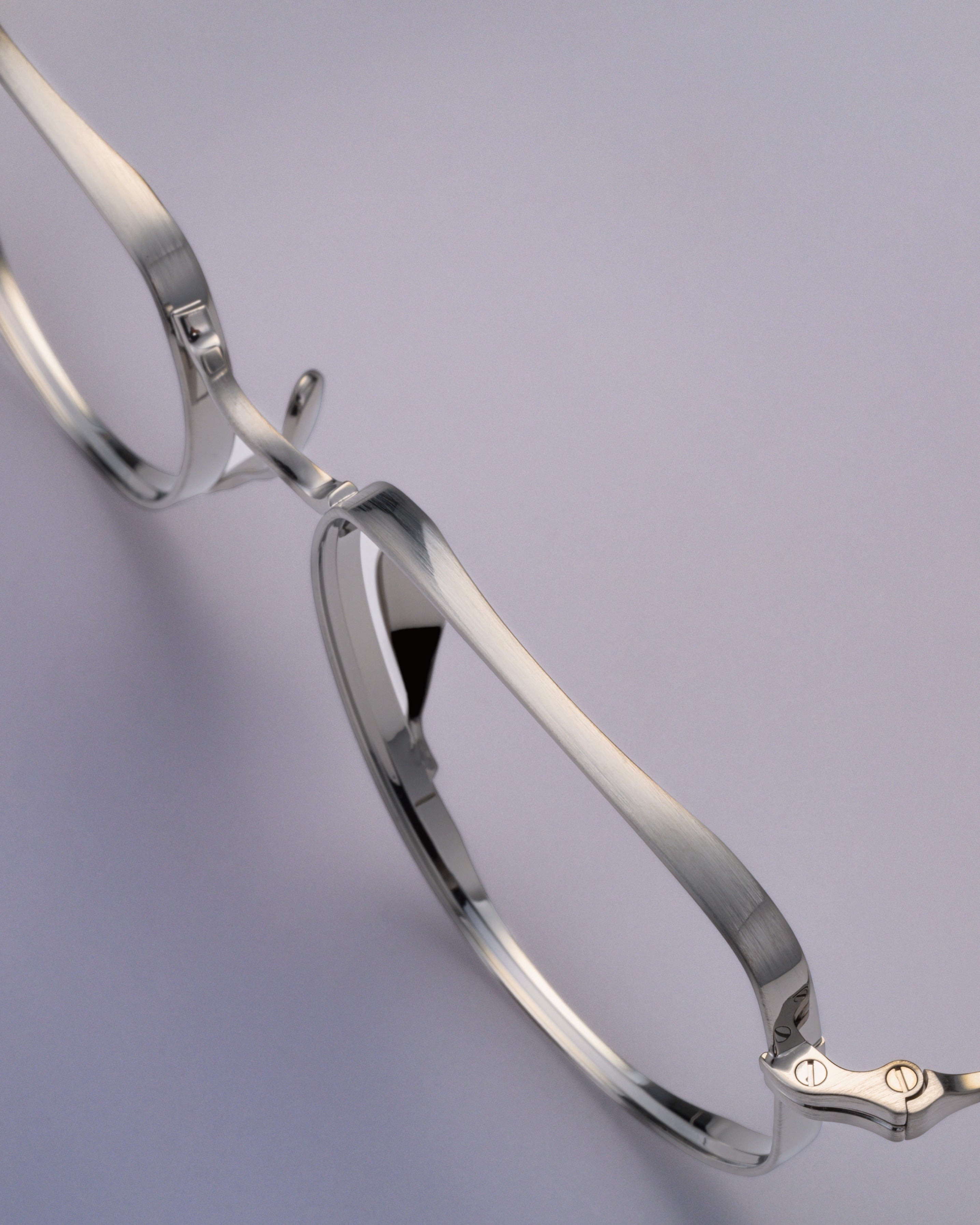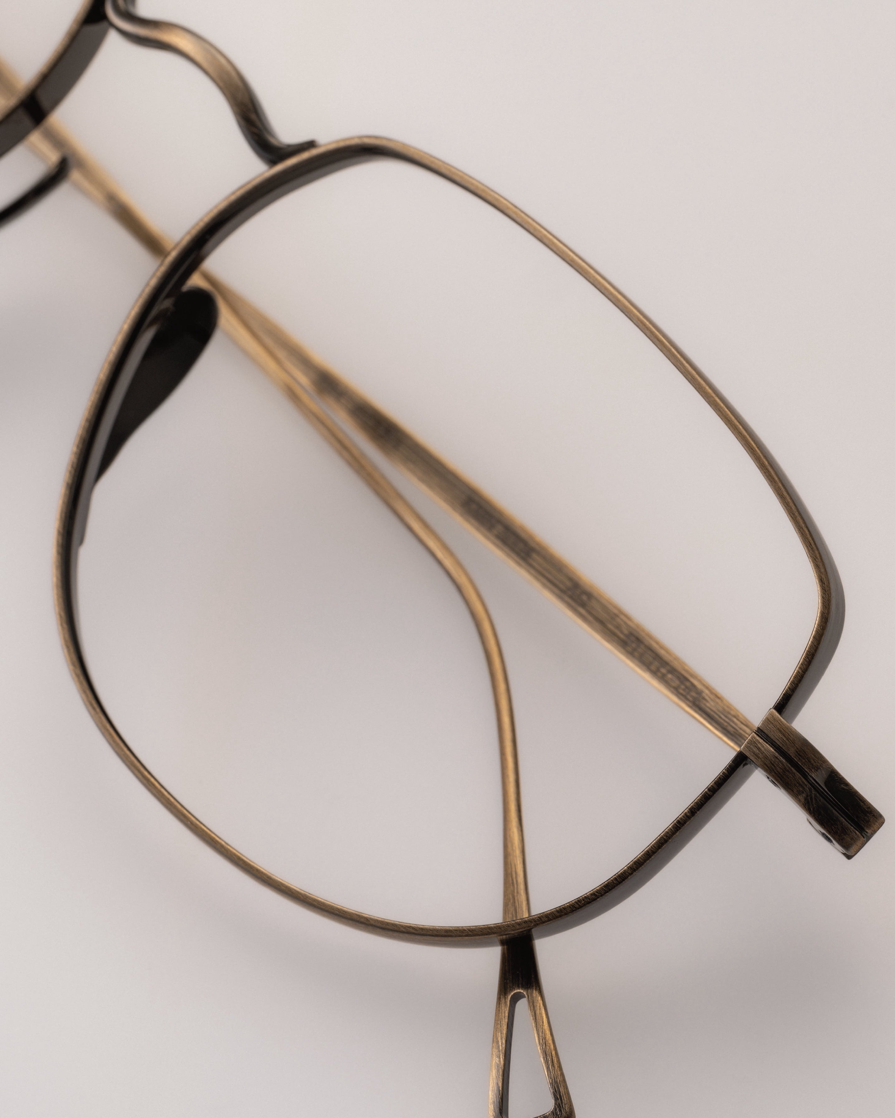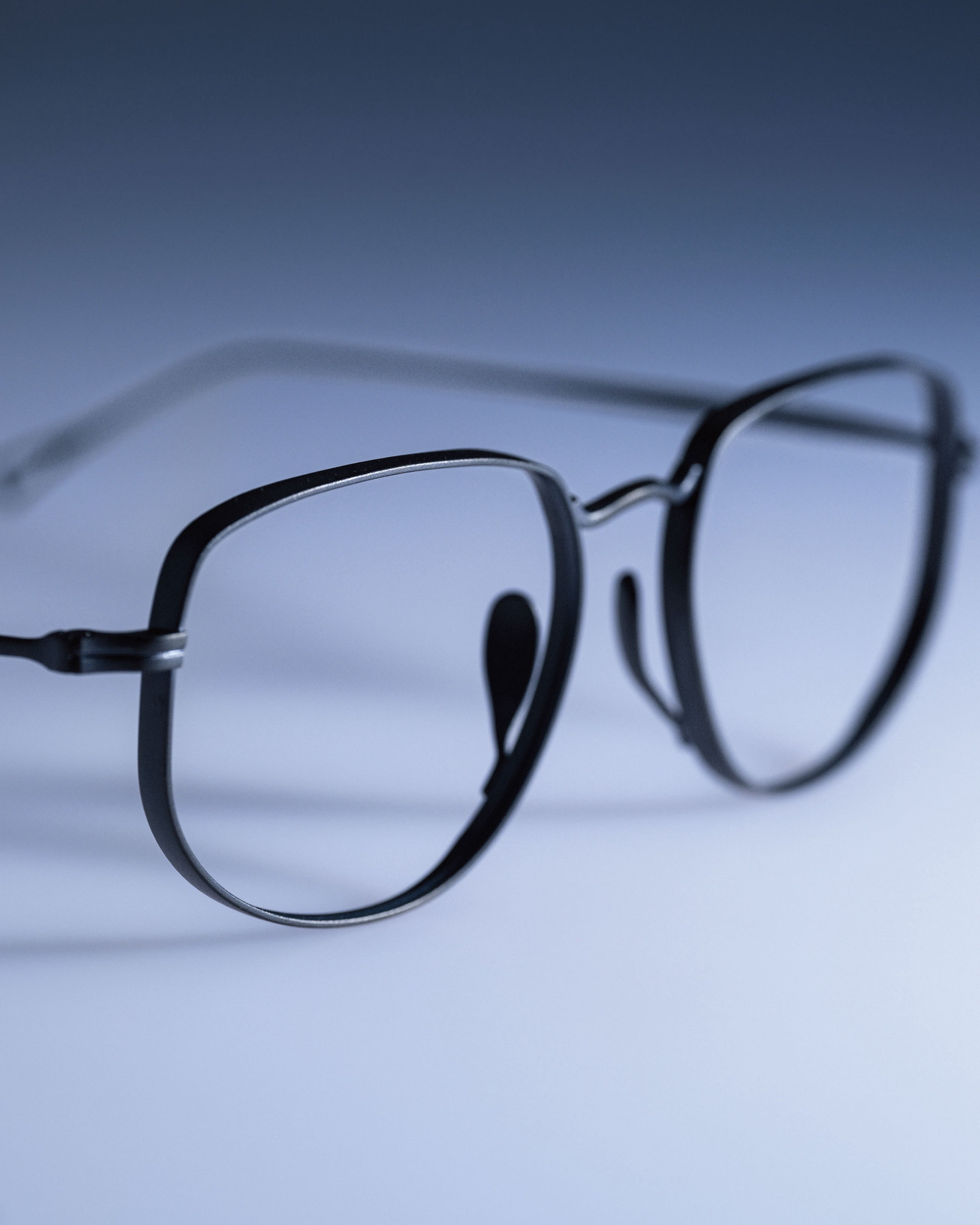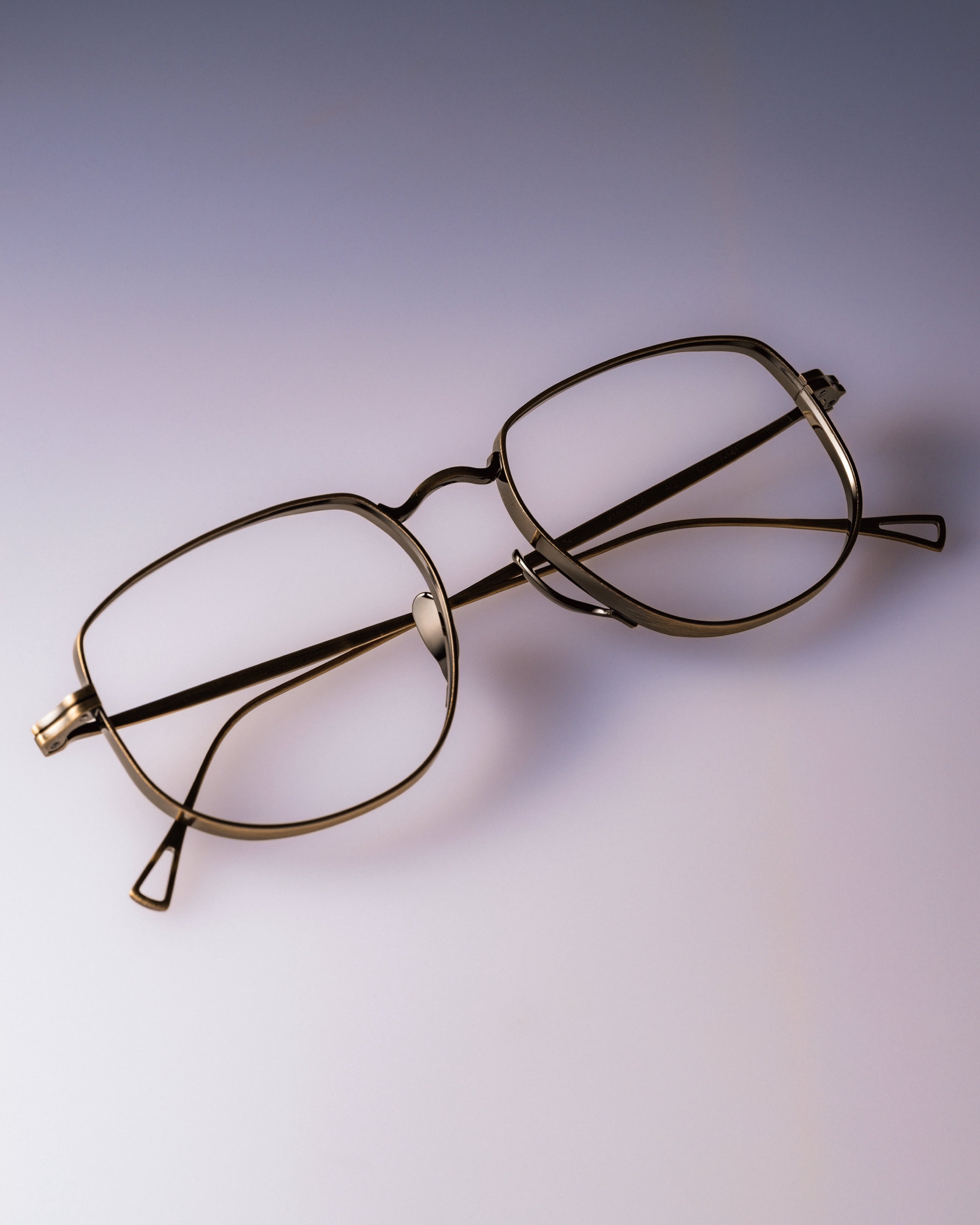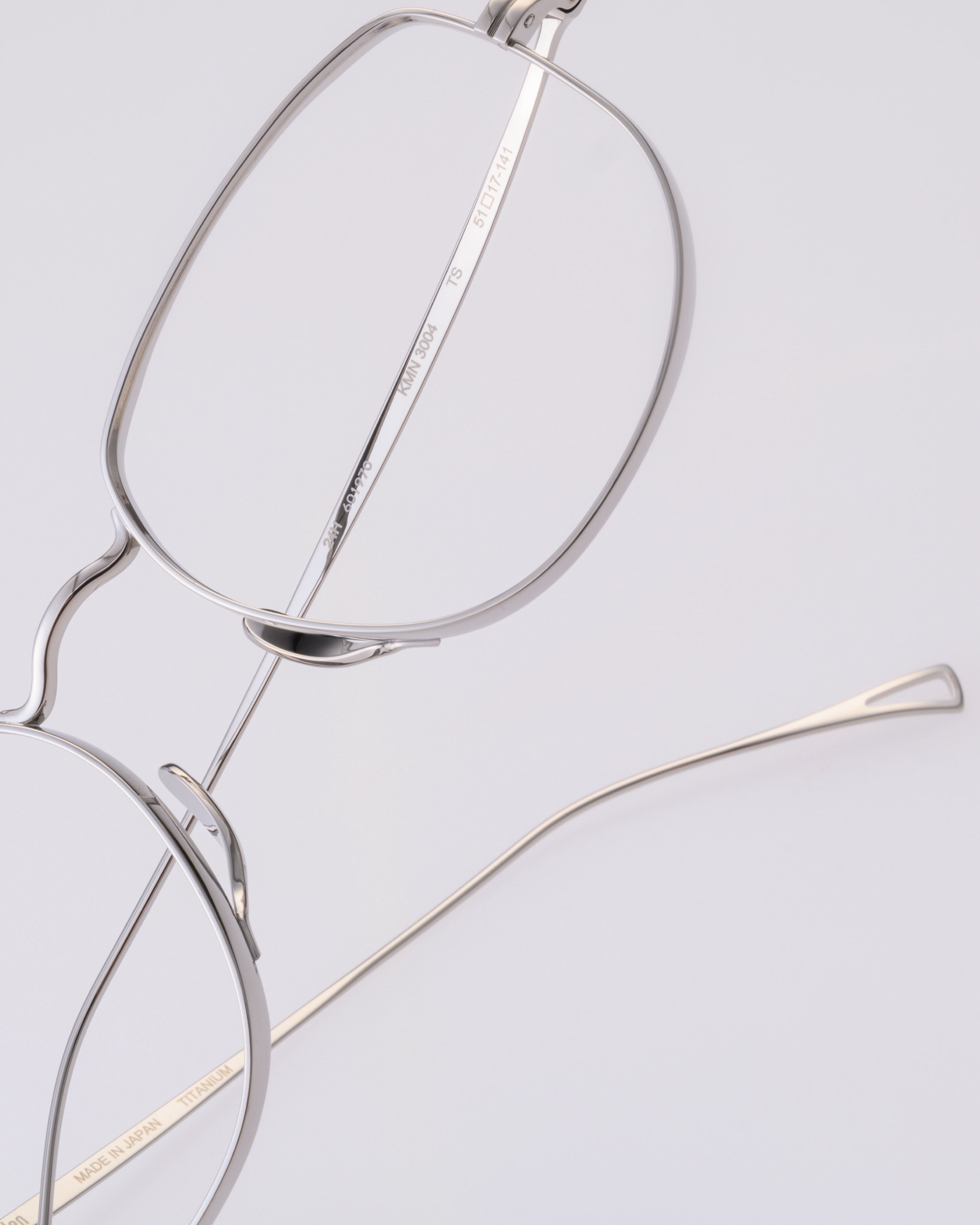 厚みのあるリムで強度の高いレンズもしっかりと収める、存在感と実用性を両立したモデル「KMN-3004」。 スクエアな要素と柔らかな曲線を融合させたティアドロップ型シェイプに、独自の立体リム構造を採用。部分的にリムの厚みを変える高度な加工技術により、レンズの厚みを自然にカバーしながら、一般的な華奢なメタルフレームにはない、奥行きのある表情を実現しました。また、横幅を抑えたミドルサイズは、ゆとりを含みながらも顔なじみの良いサイズ感に。度付きメガネとしての日常使いを考慮し、快適な掛け心地と上品な佇まいを両立しています。丈夫で末永く愛用できる、クラシックモダンな一本です。