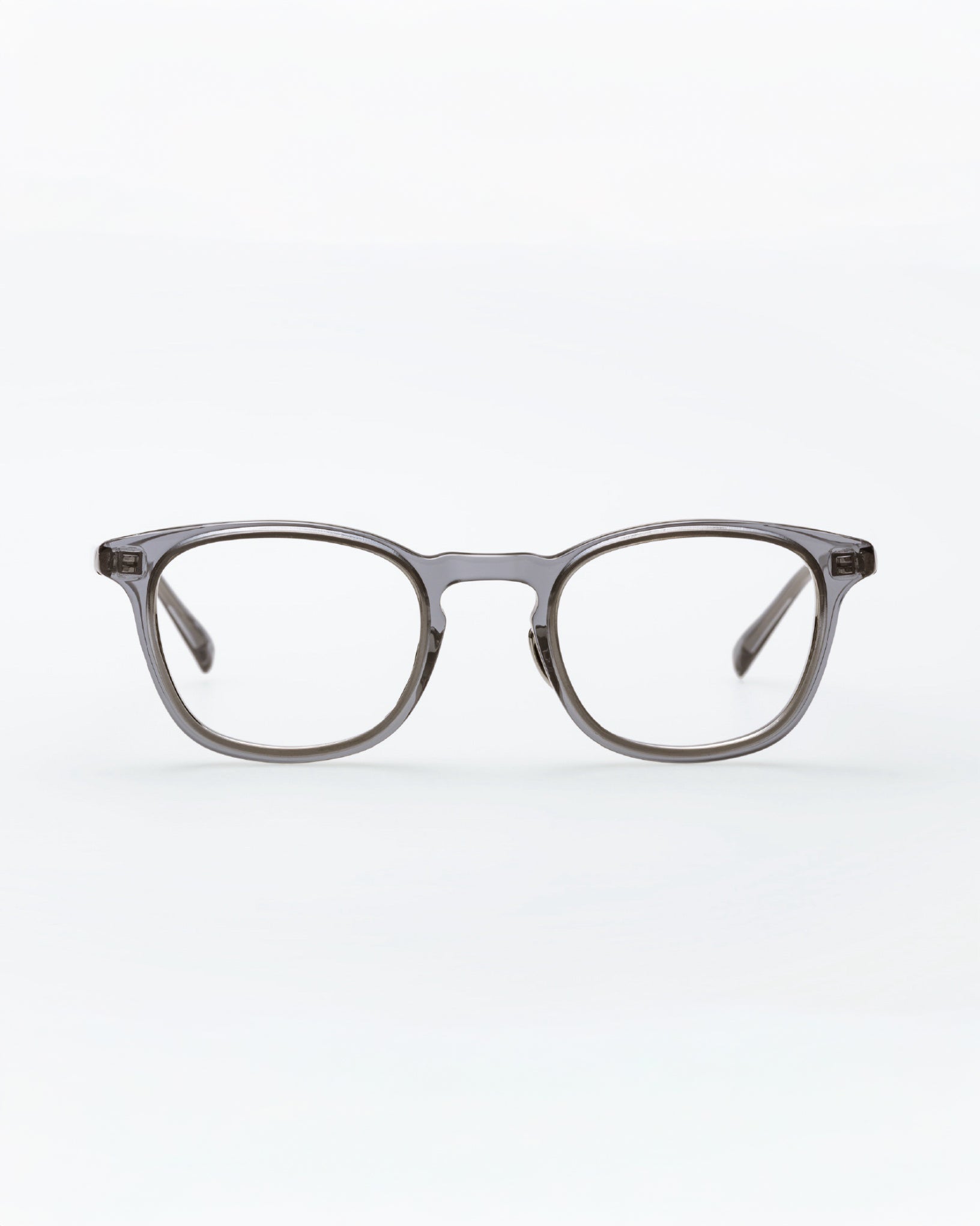 セルフレームの柔らかな印象と、メタルの構造美を融合させた、カメマンネン独自の技術が光る、「KMN9950」 フレームのインナーに厚みのあるメタルリムを内蔵し、フロントは面合わせで仕上げながら後方に厚みを持たせる設計を採用。すっきりとした正面の印象を保ちつつ、目を惹く立体的なデザインを実現しました。また、セルフレームでありながら、ブランドの代名詞であるスプラウトノーズパッドをメタルリムに装着。細部にまでこだわり抜いた作りが、カメマンネンらしさを静かに主張しています。半透明な生地越しにインナーメタルがほのかに透け、しっとりとした奥行きのある表情を生み出していることも魅力のひとつ。素材の個性を活かしながら、上質な存在感を放つ一本です。
