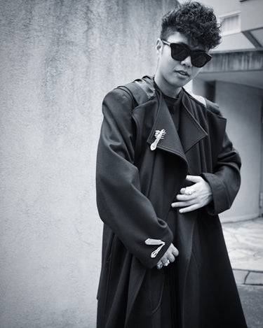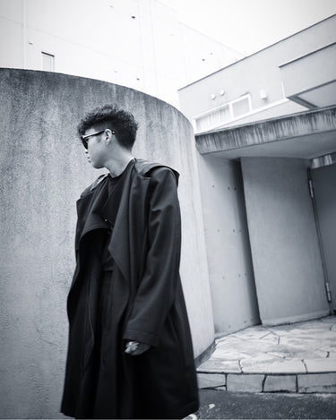肩からコートをかけたような印象で