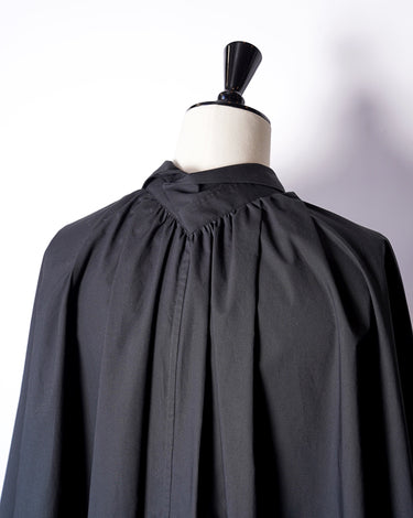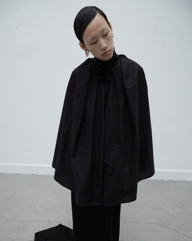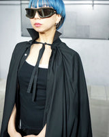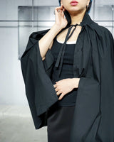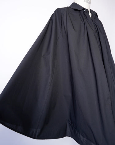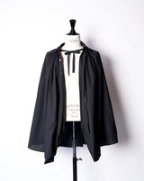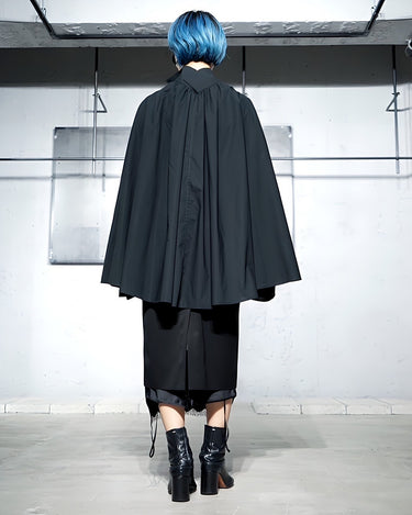 ・シャツをケープにしていることで軽快でエアリーなシルエットを作り出すことに実現しており、シックでエレガントなデザインとなっています。