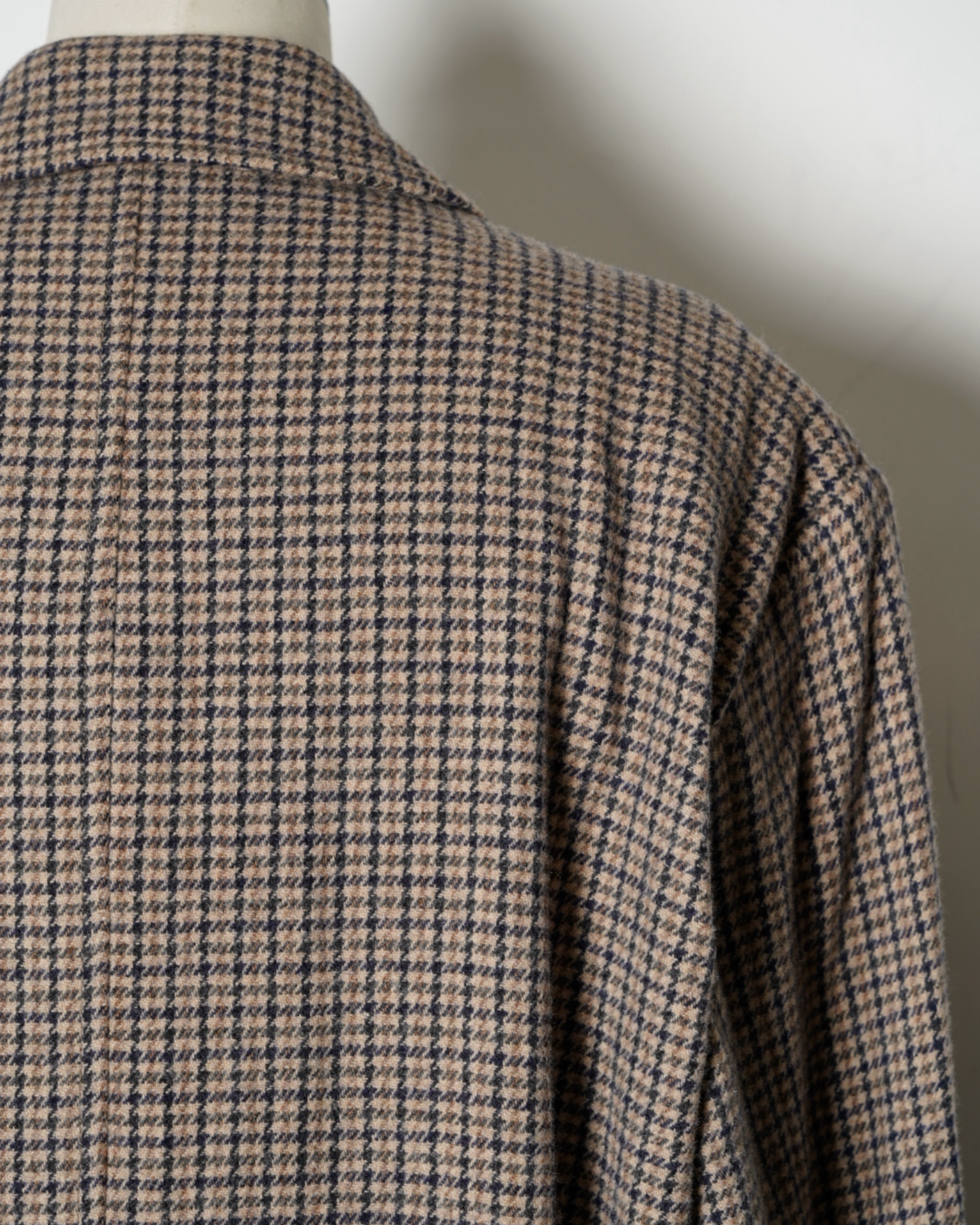・ハウンドトゥース柄のオーセンティックなツイードコートに独自のエイジング加工を施したデザインとなっており、しなやかな質感とこなれた風合いを生み出しています。