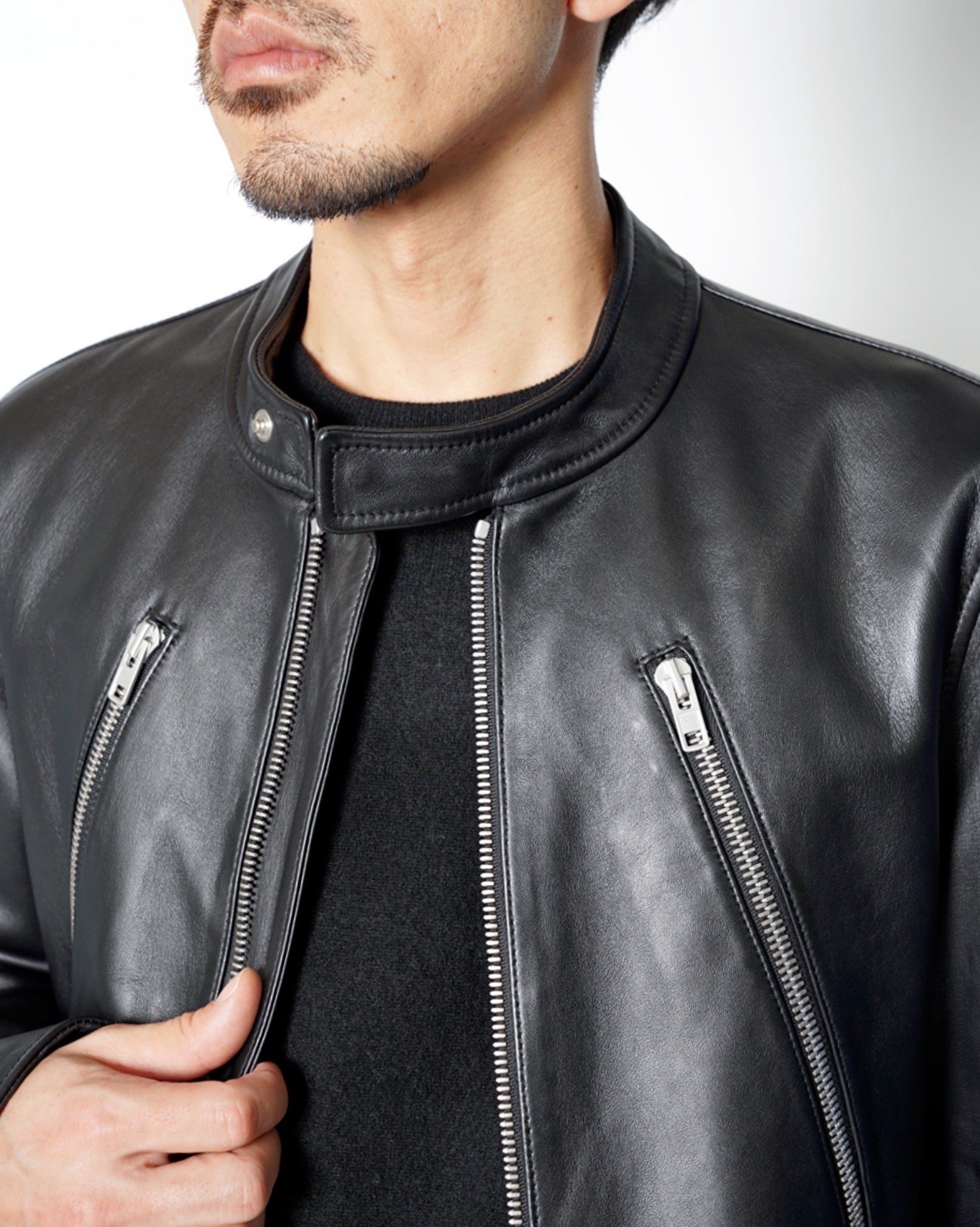 ・シープスキンは繊維構造が緻密でありながら滑らかさを兼ね備えている為、素材の表面が均一に整っており、男くさい印象のあるレザージャケットを品格の備わった印象に昇華。