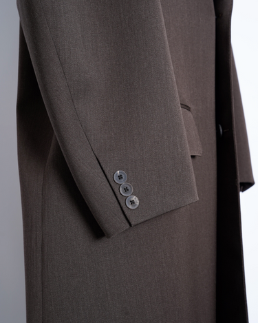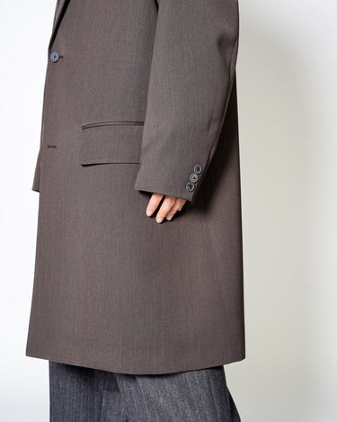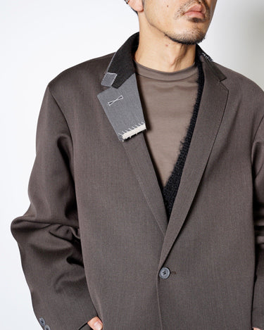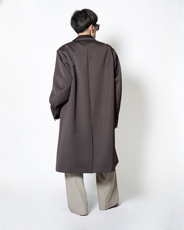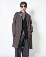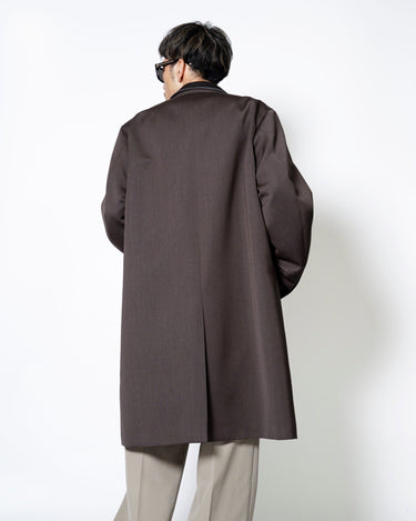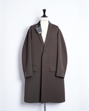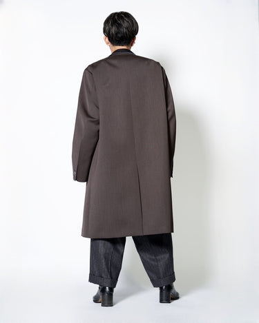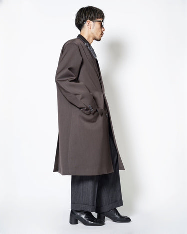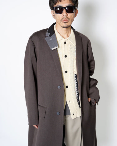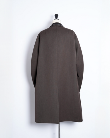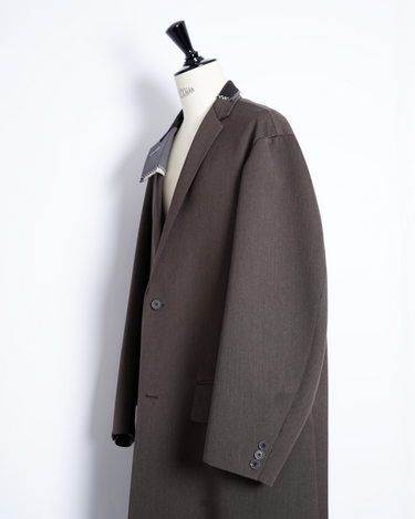 ・kolorらしいオーバーサイジングのシルエットによるテーラリングアイテムで、端正でありながらも肩肘を張らない印象のチェスターコートに。