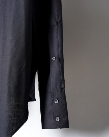 ・シックでドレッシーな質感がモード感を後押しする、上質な梳毛ウール生地を使用。