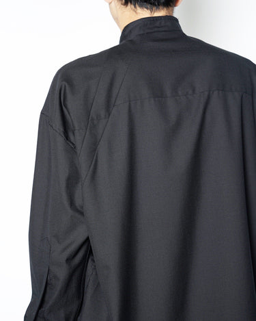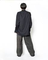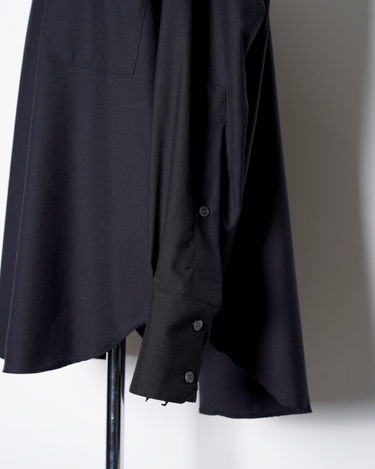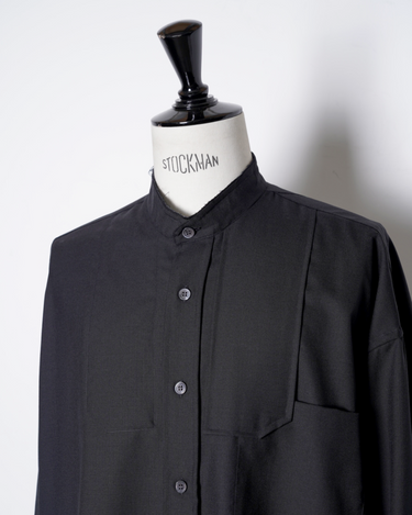 ・ネック周りにシャツのパーツをパネル状に取り付けており、再構築的なデザイン性を発揮。