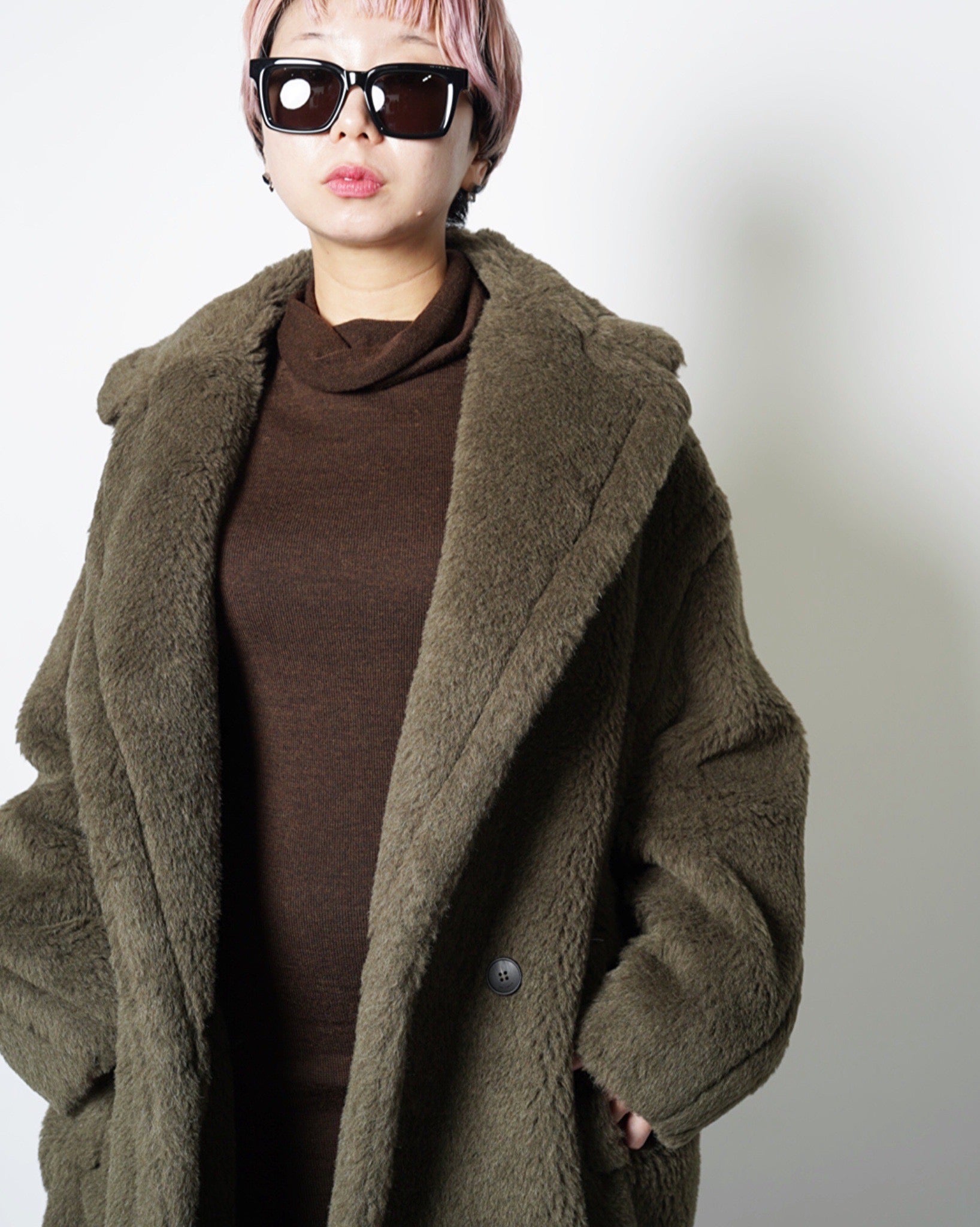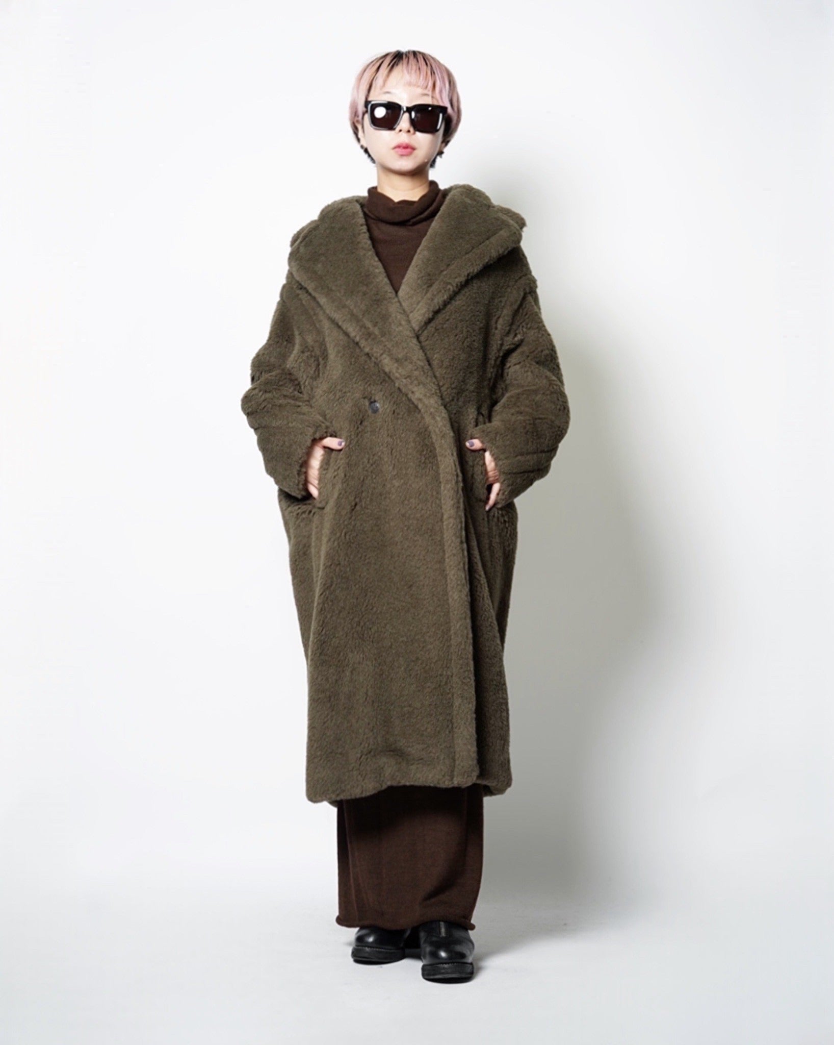 ・こちらのカラーはアルパカ/ウール/シルクによる贅沢なボアを生地分量たっぷりに豪華に使用。