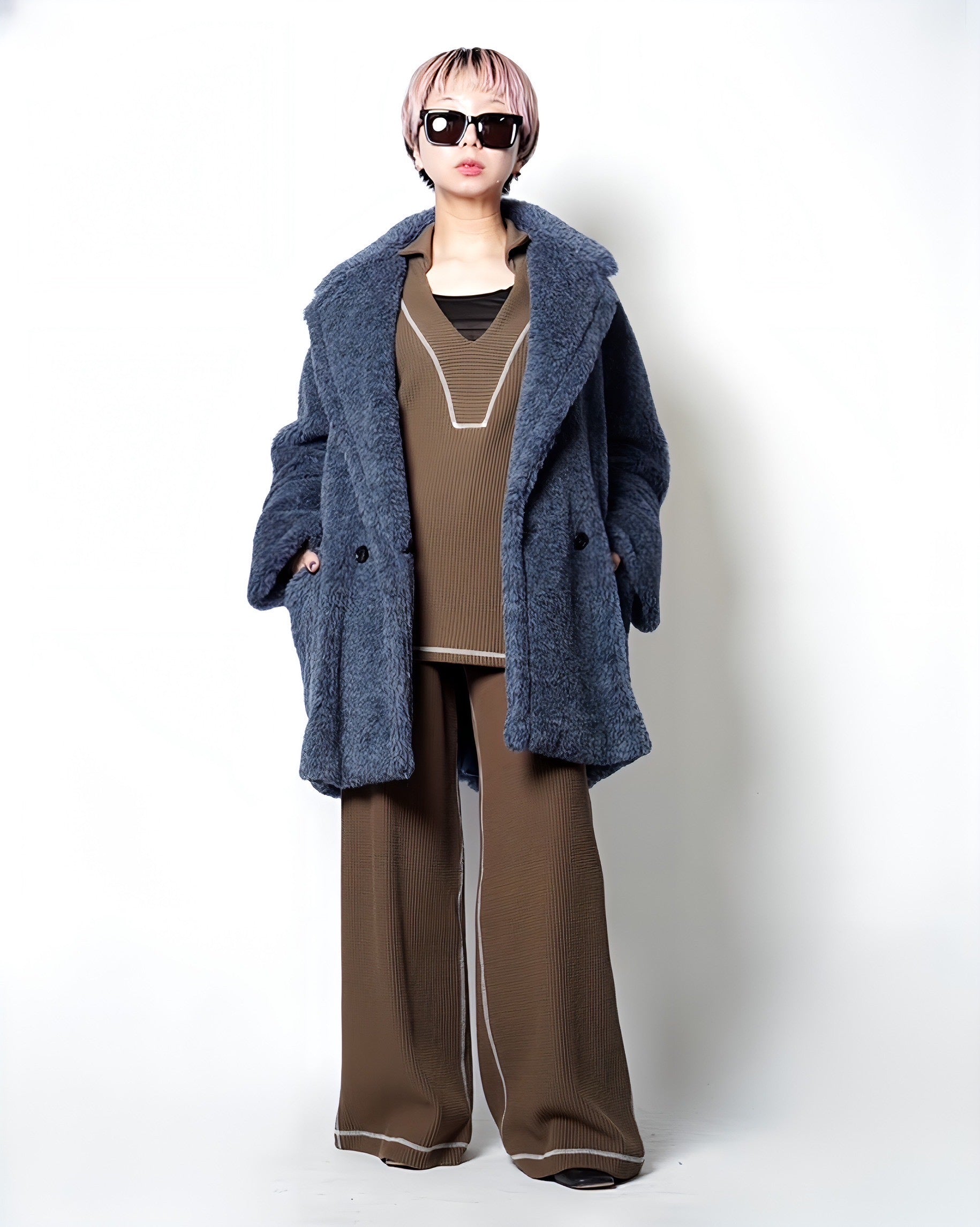 ・こちらのカラーはアルパカ/ウール/シルクによる贅沢なボアを生地分量たっぷりに豪華に使用。