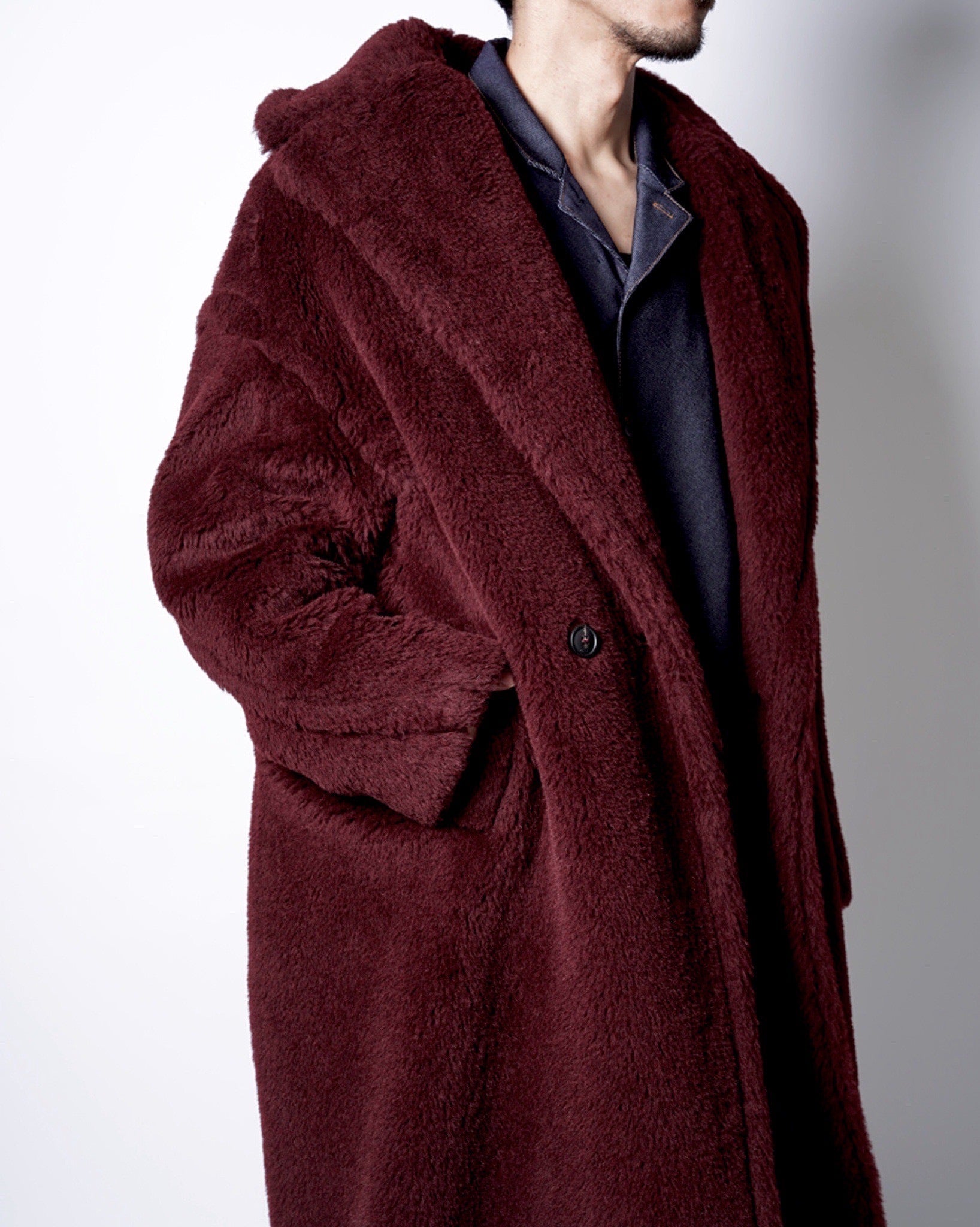 ・こちらのカラーはアルパカ/ウール/シルクによる贅沢なボアを生地分量たっぷりに豪華に使用。