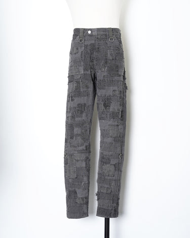 ・L字型ポケットの無骨なベイカーパンツの意匠を日本の伝統的な襤褸(ボロ)素材で作り上げた、blackmeansの真骨頂的デザイン。