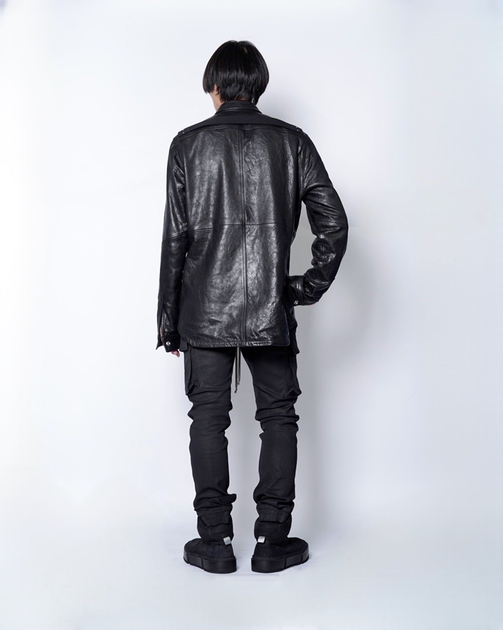 ・ヨークにはRick Owensお馴染みの厚みのあるグログランベルトを配しており、インダストリアルで重厚的なアクセントになると共に脱いだ時に肩に掛けて持つことができます。