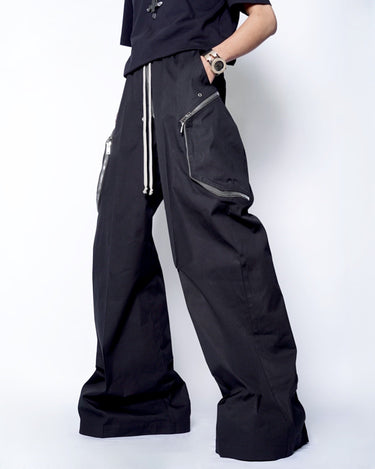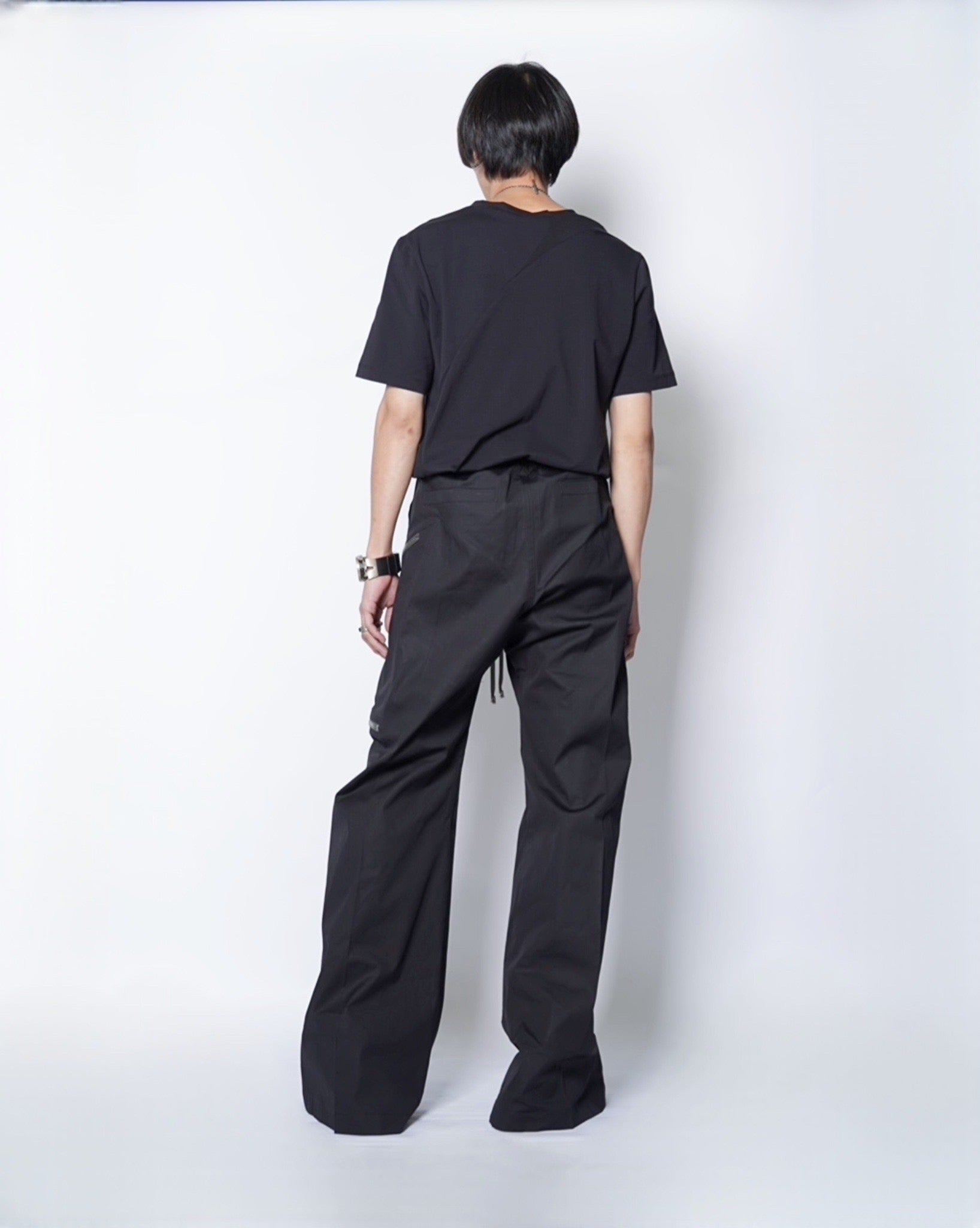 ・スーパーワイドなシルエットながらもセンタークリースをしっかりと入れていることで、直線的でソリッドな仕上がりとなっており、Rick Owensらしい構築的なデザインに。